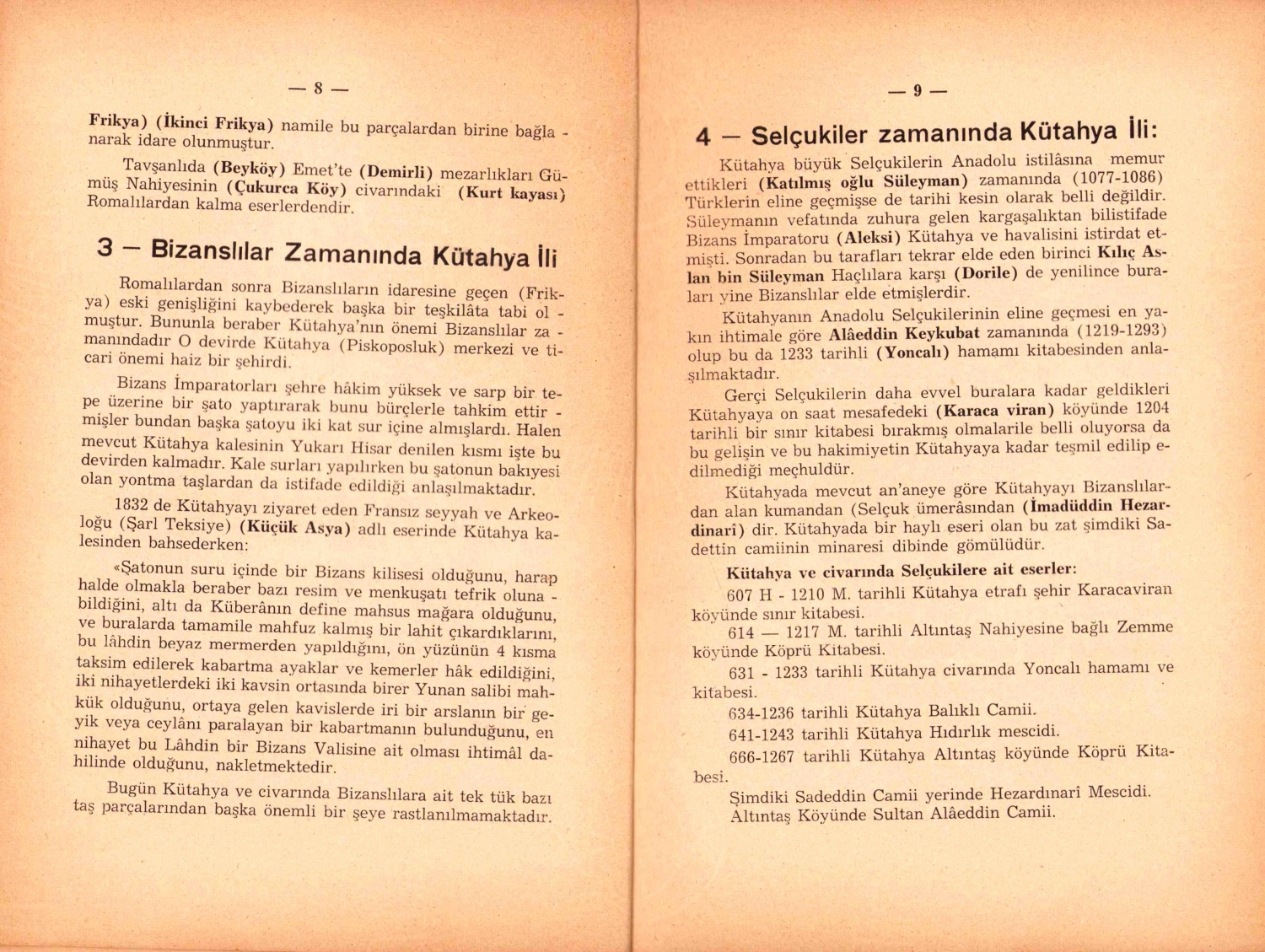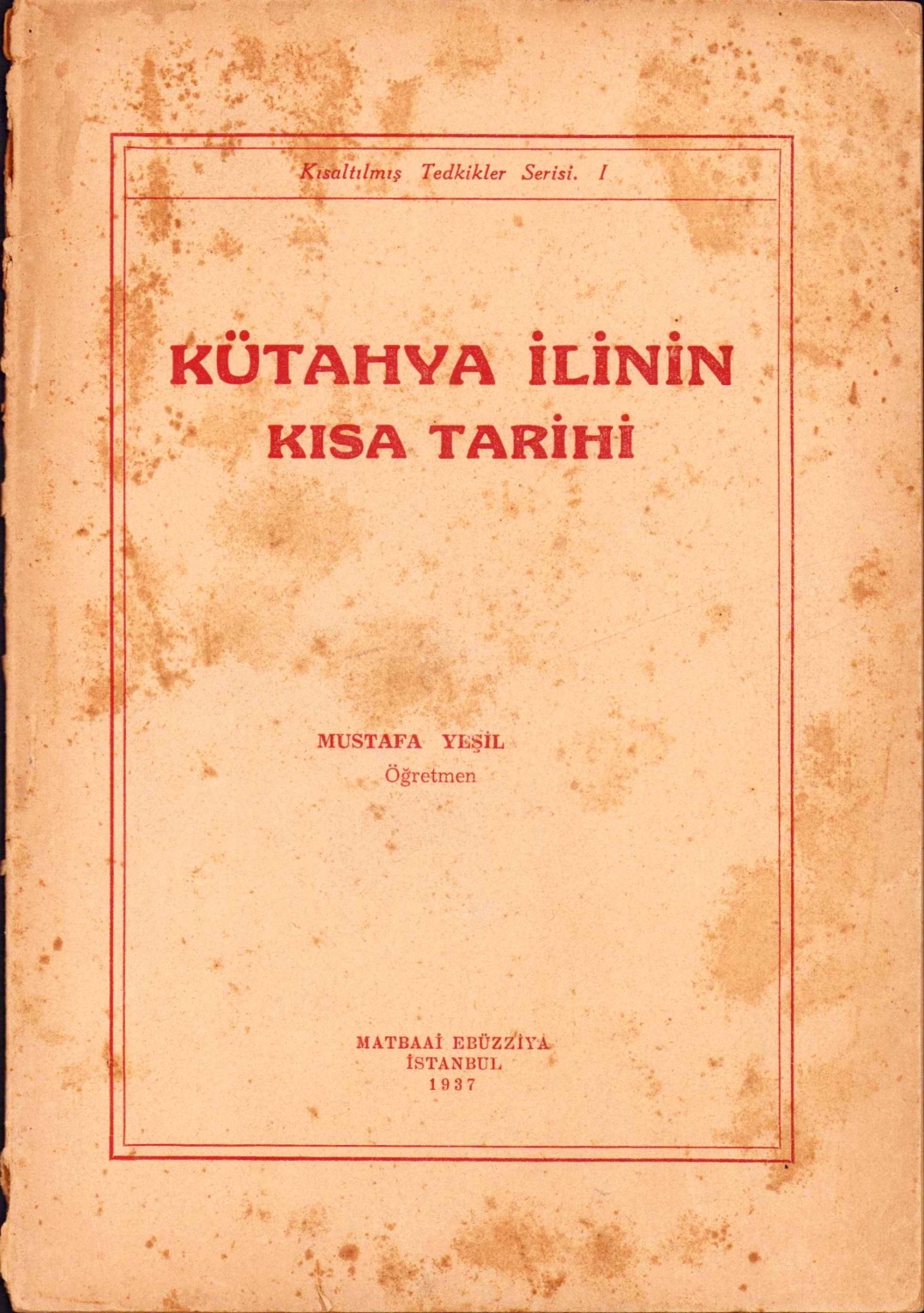 Kütahya İlinin Kısa Tarihi, Mustafa Yeşil, Matbaa-i Ebüzziya, İstanbul, 1937, resimli, 39 sayfa, 16x24 cm