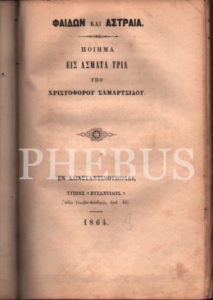 Rumca HAYVANLAR VE YILDIZLAR- ÜÇ ŞARKIYA YÖNELİK ŞİİRLER, Hristoforos Samargidu, Bizans Matbaası, İstanbul 1864, 122 s., 13x20 cm