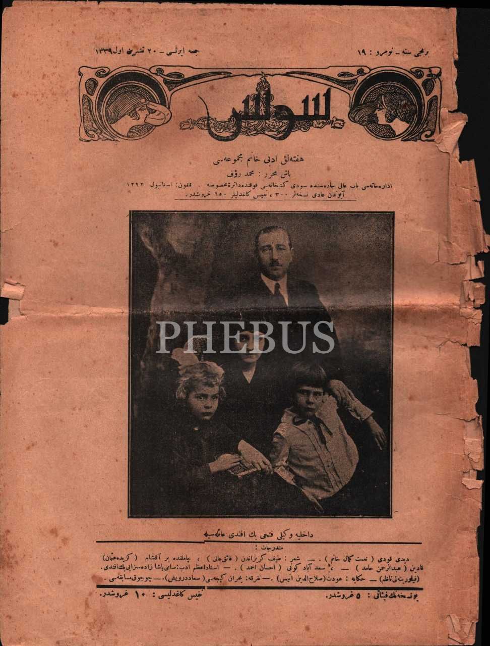 Dahiliye Vekili Fethi Beyefendi ailesi görselli SÜS dergisi, 20 Teşrinievvel 1339, 23x31 cm