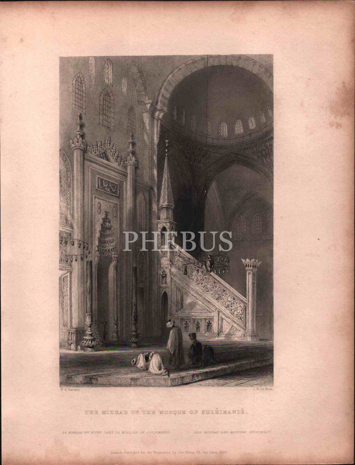 Süleymaniye Camii mihrabı gravürü, London 1939, 20x26 cm