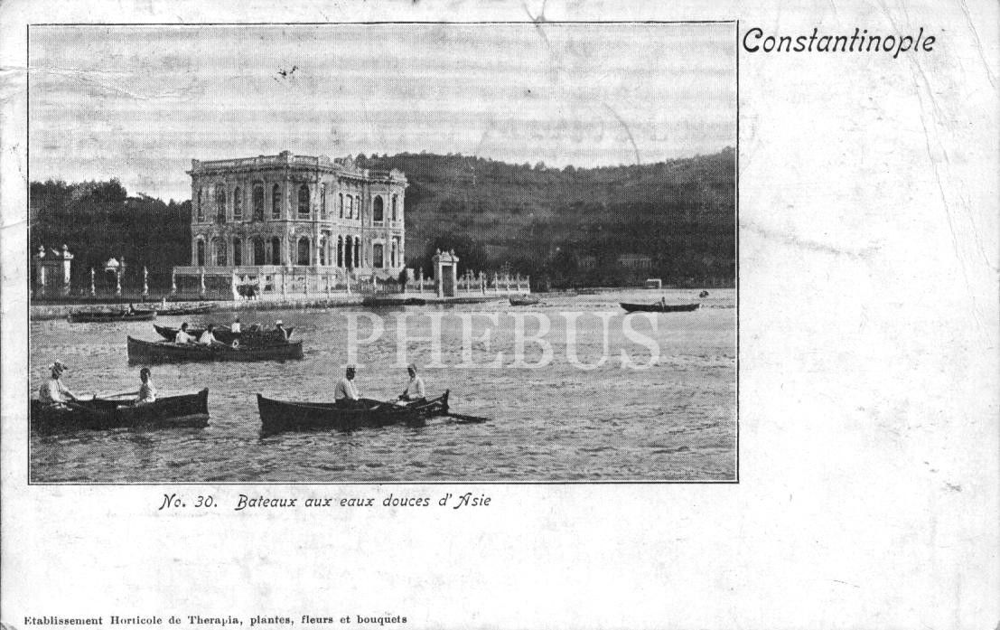 Küçüksu Kasrı önünde kayıklar, Constantinople, postadan geçmiş, 8x13 cm