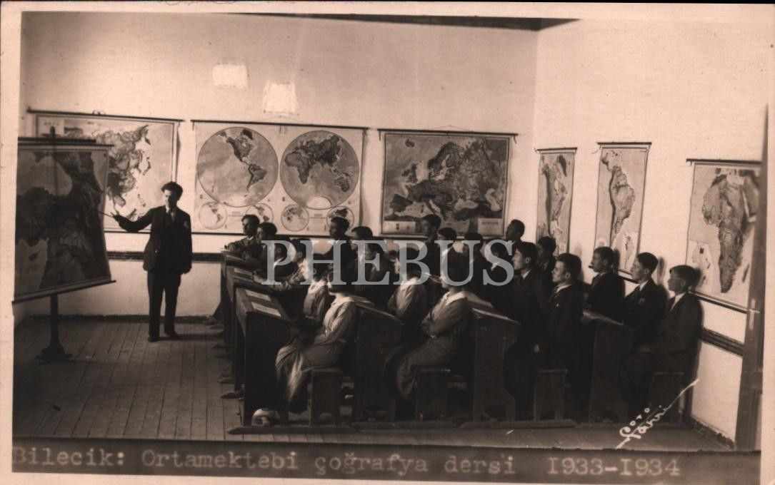 Eğitim tarihi: 1933-34 eğitim yılında Bilecik Orta Mektebi´nde coğrafya dersi, Foto Fahri damgalı, 8x13 cm