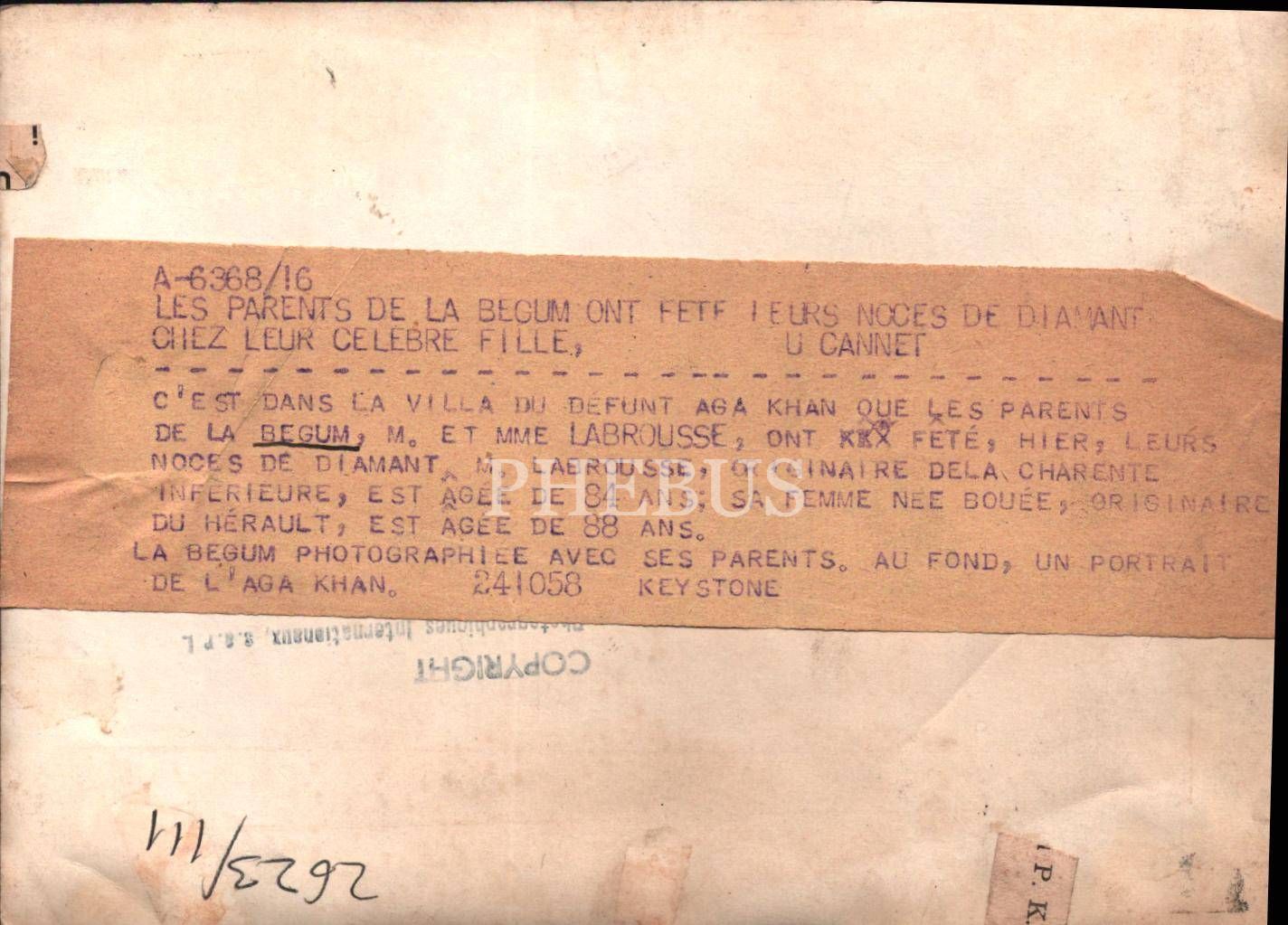 Siyasi tarih: Milletler Cemiyeti Meclisi Başkanı III. Ağa Han´ın eşi Begüm Om Habibeh Ağa Han, anne ve babası, 12x17 cm