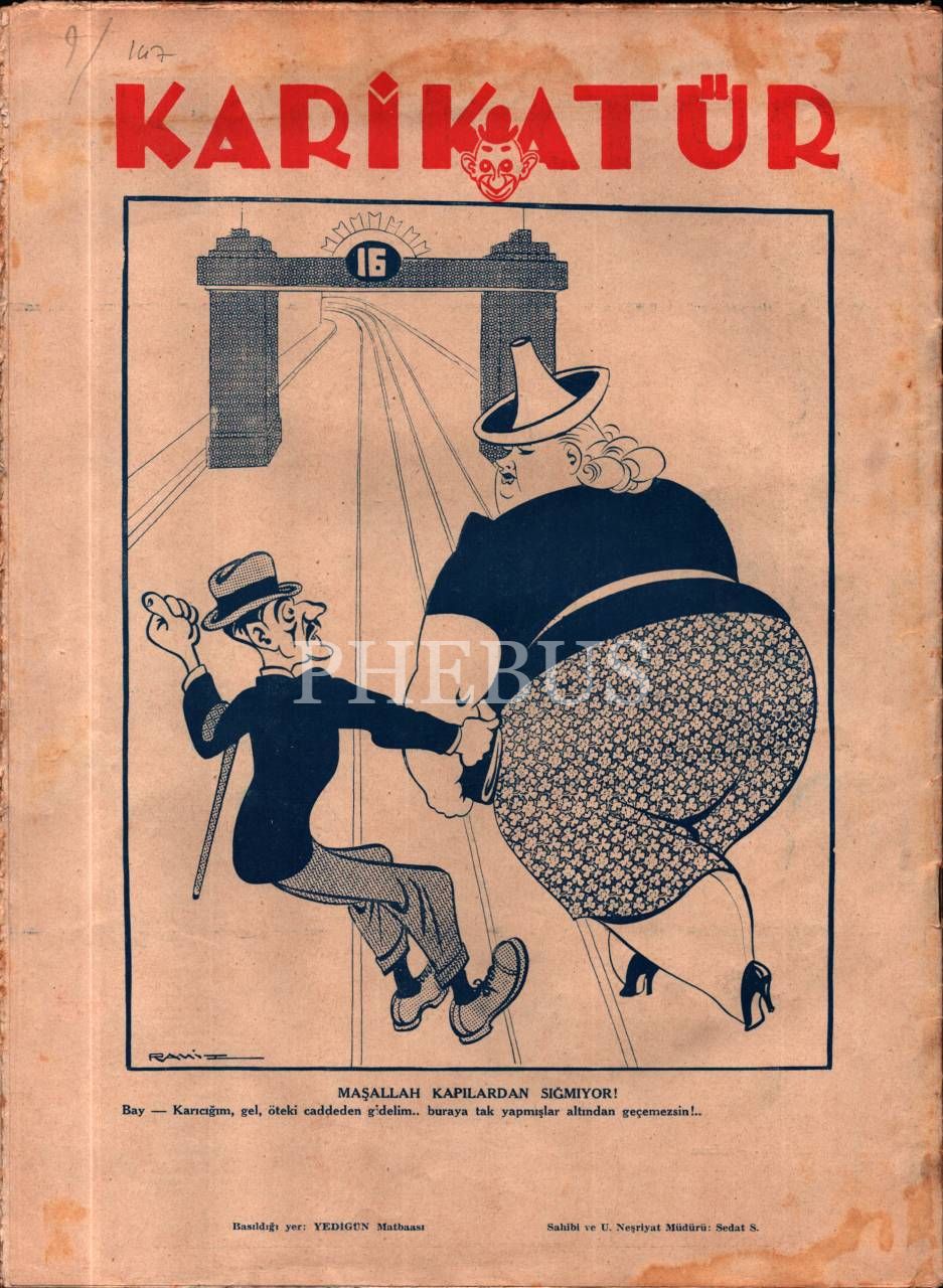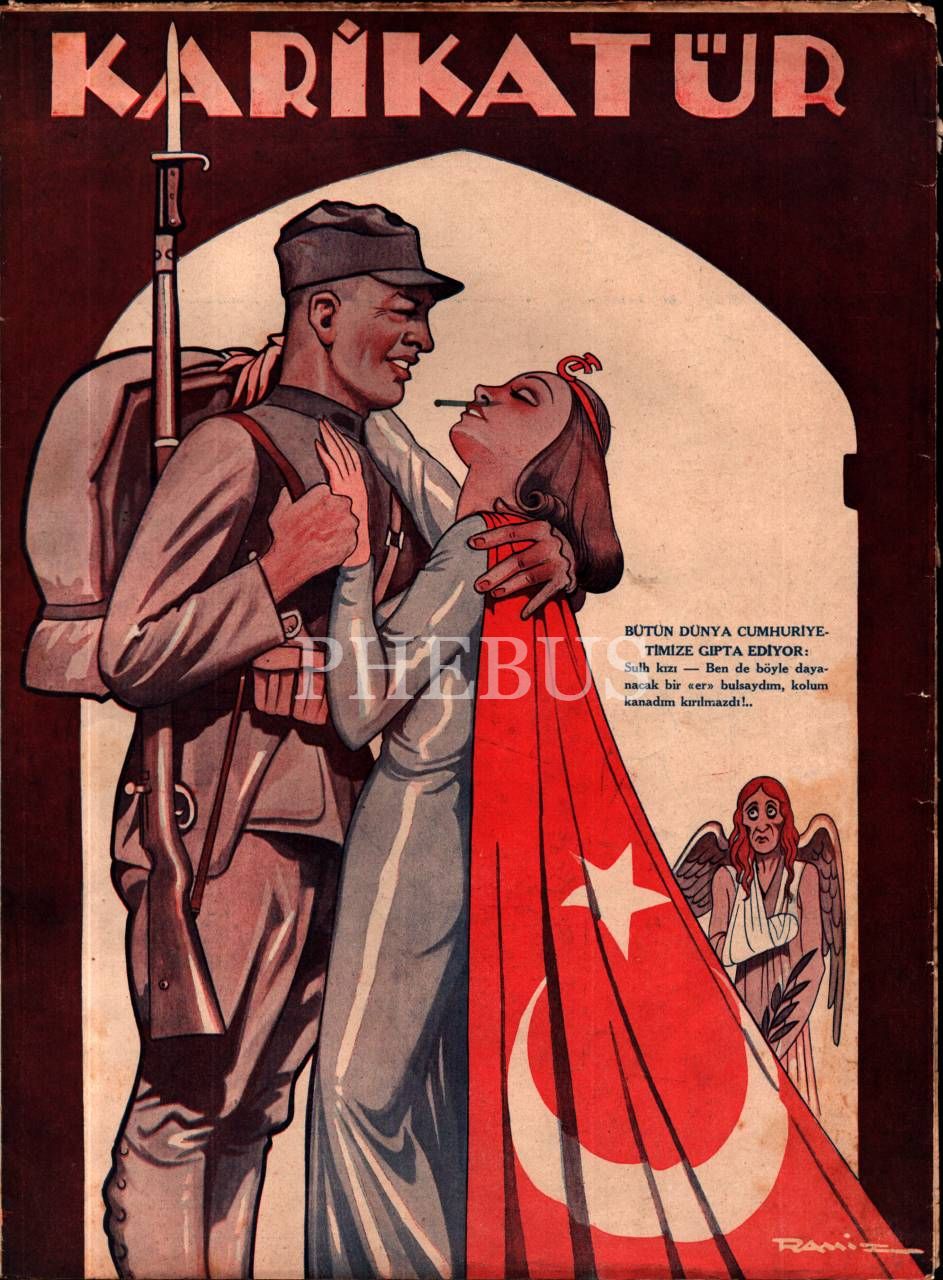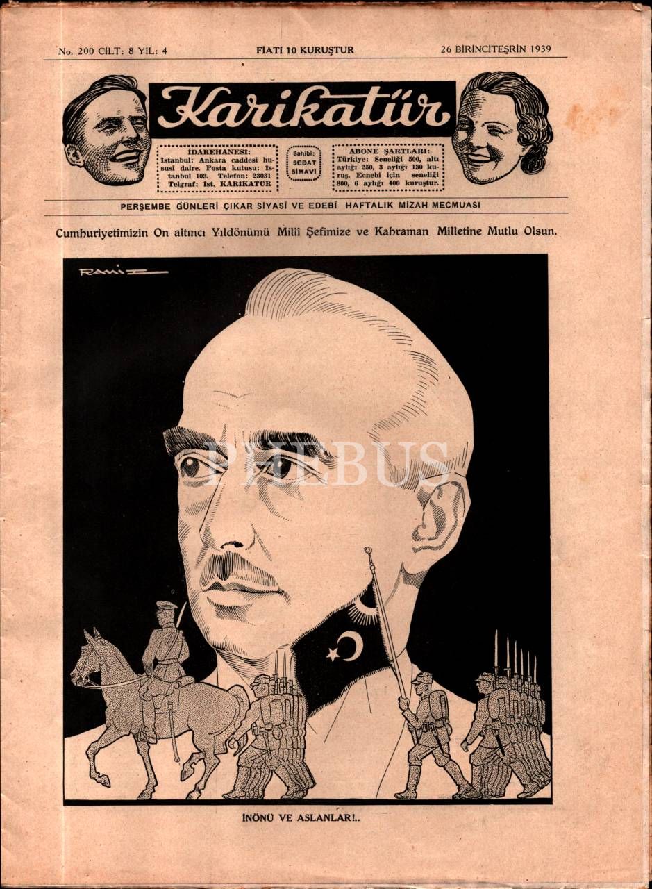 Siyasi ve edebî mizah dergisi KARİKATÜR´ün Ramiz imzalı Cumhuriyet konulu görseliyle, 1939 tarihli 200. sayısı, 25x33 cm