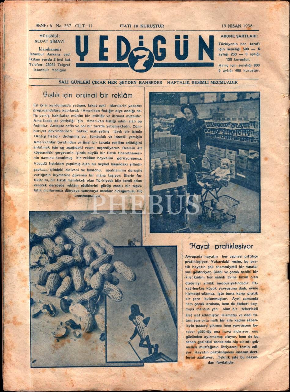 YEDİGÜN dergisinin Sabiha Gökçen kapaklı ve 1938 tarihli 267. sayısı, 25x33 cm
