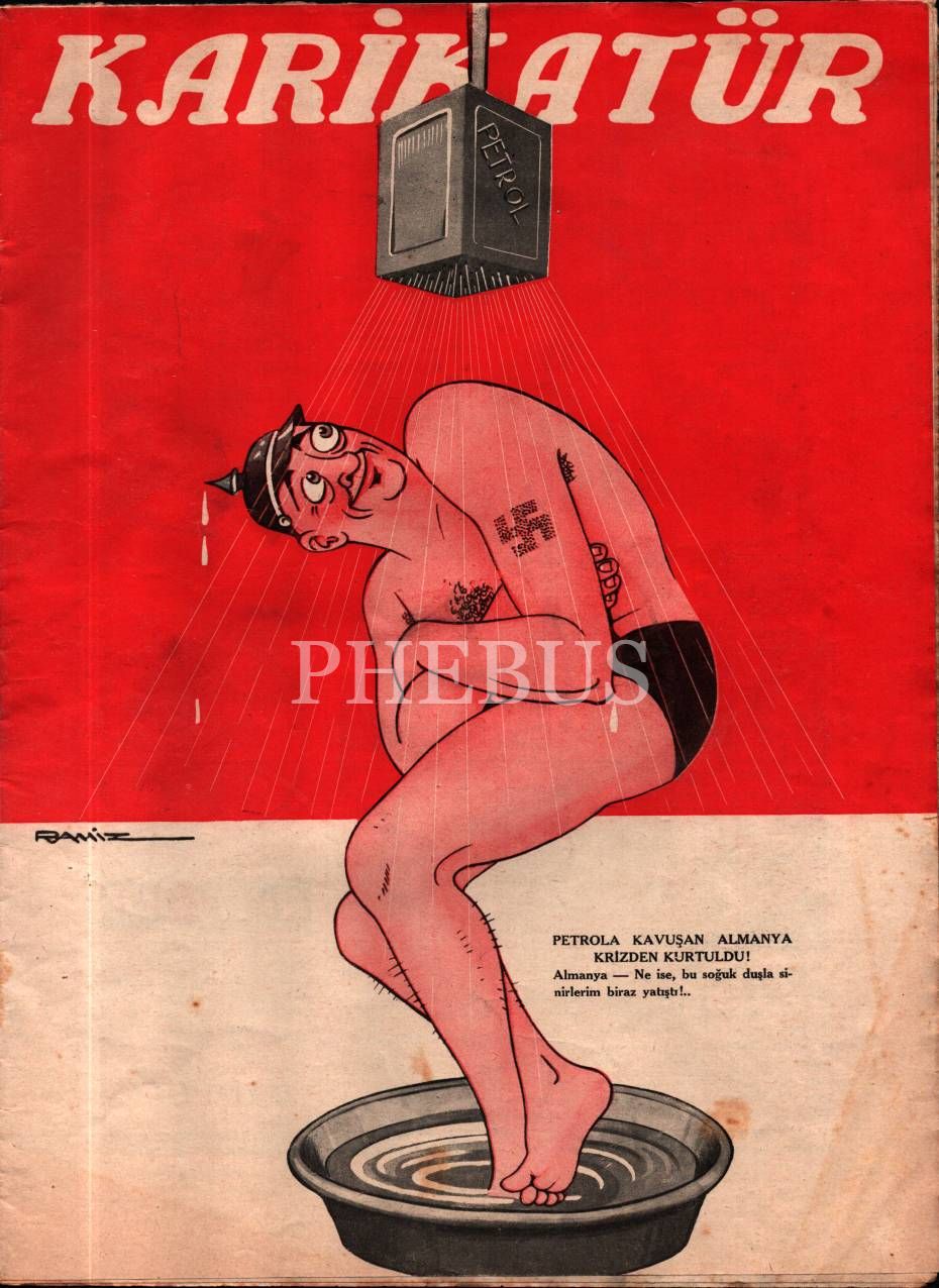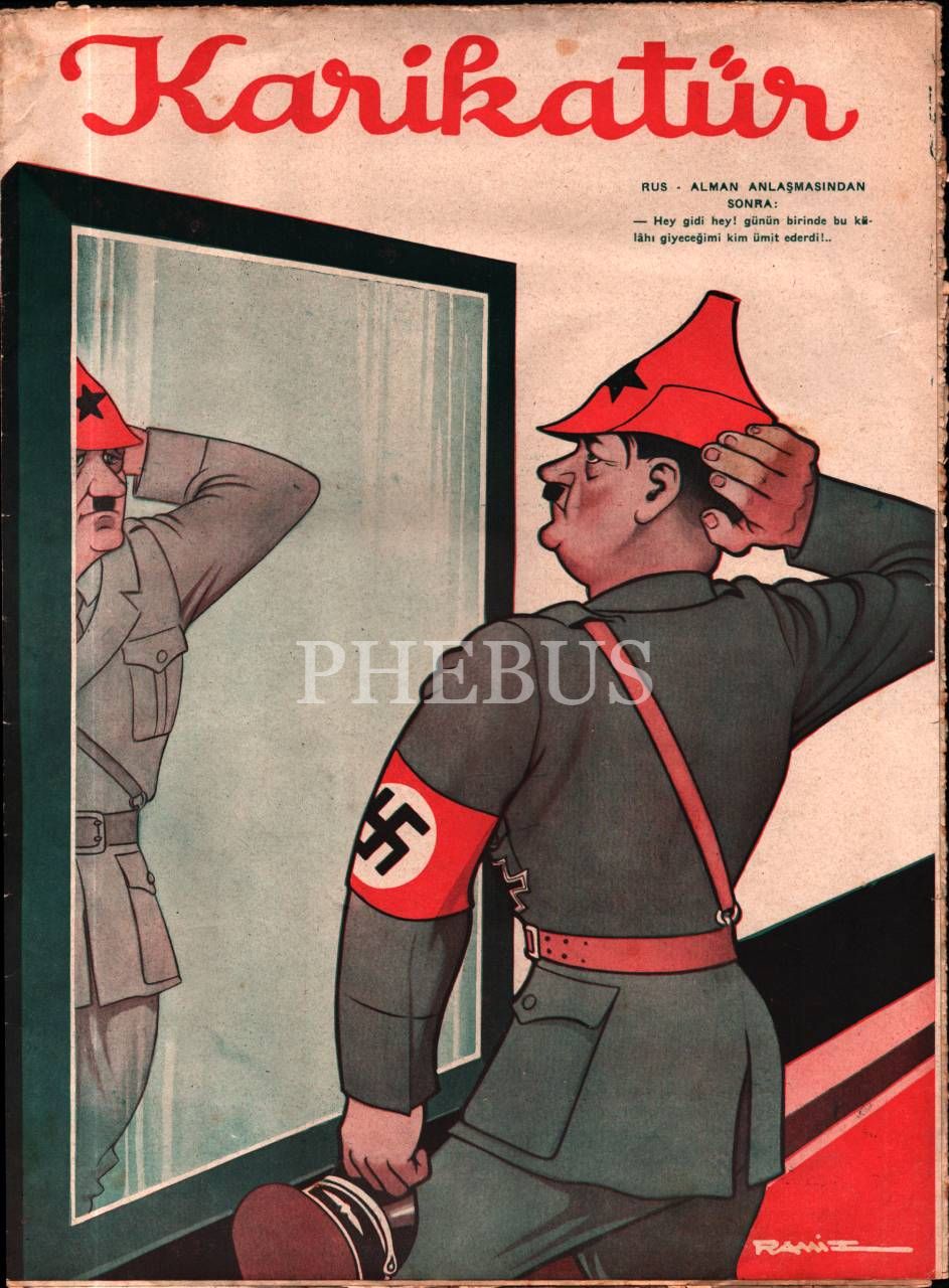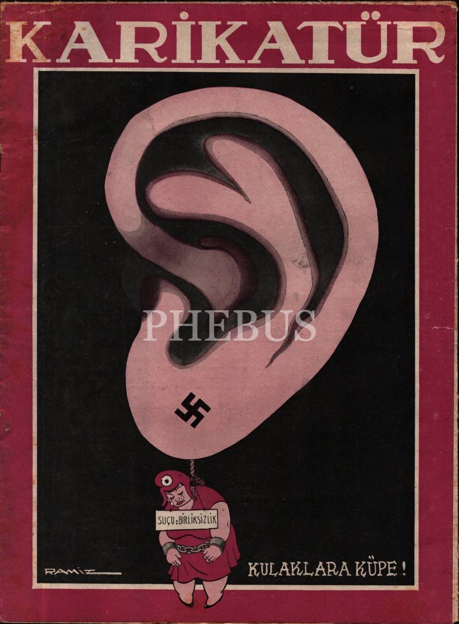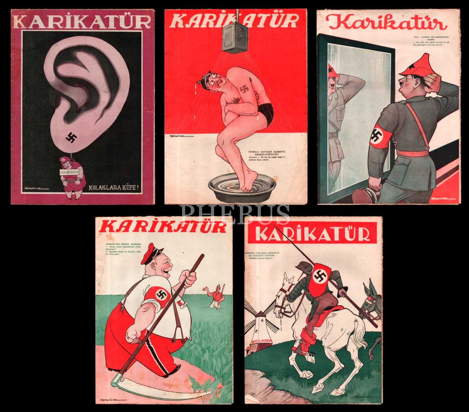 Siyasi ve edebî mizah dergisi KARİKATÜR´ün Ramiz imzalı Nazi konulu kapak görselleriyle 1939-40 tarihli 5 sayısı, 25x33 cm