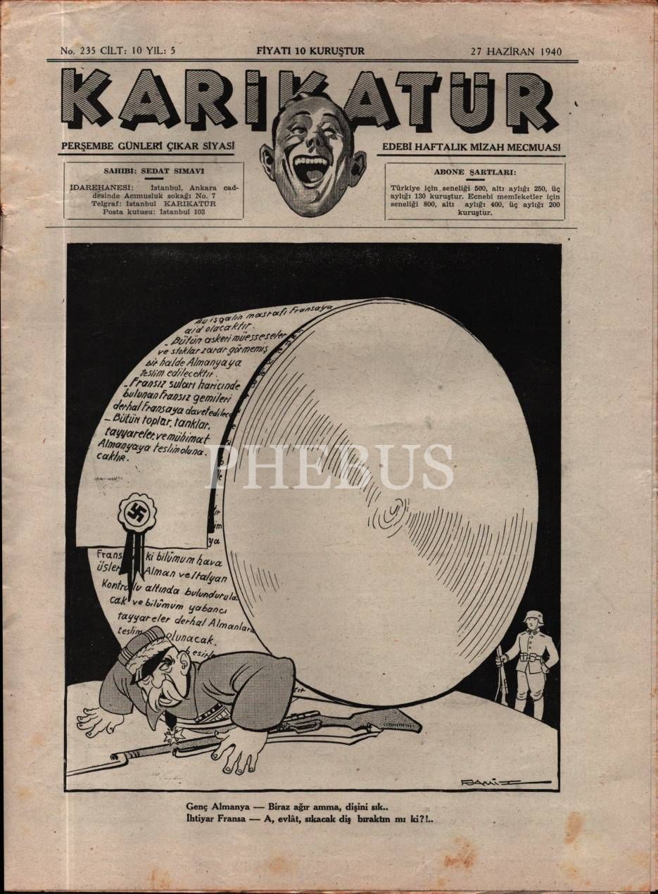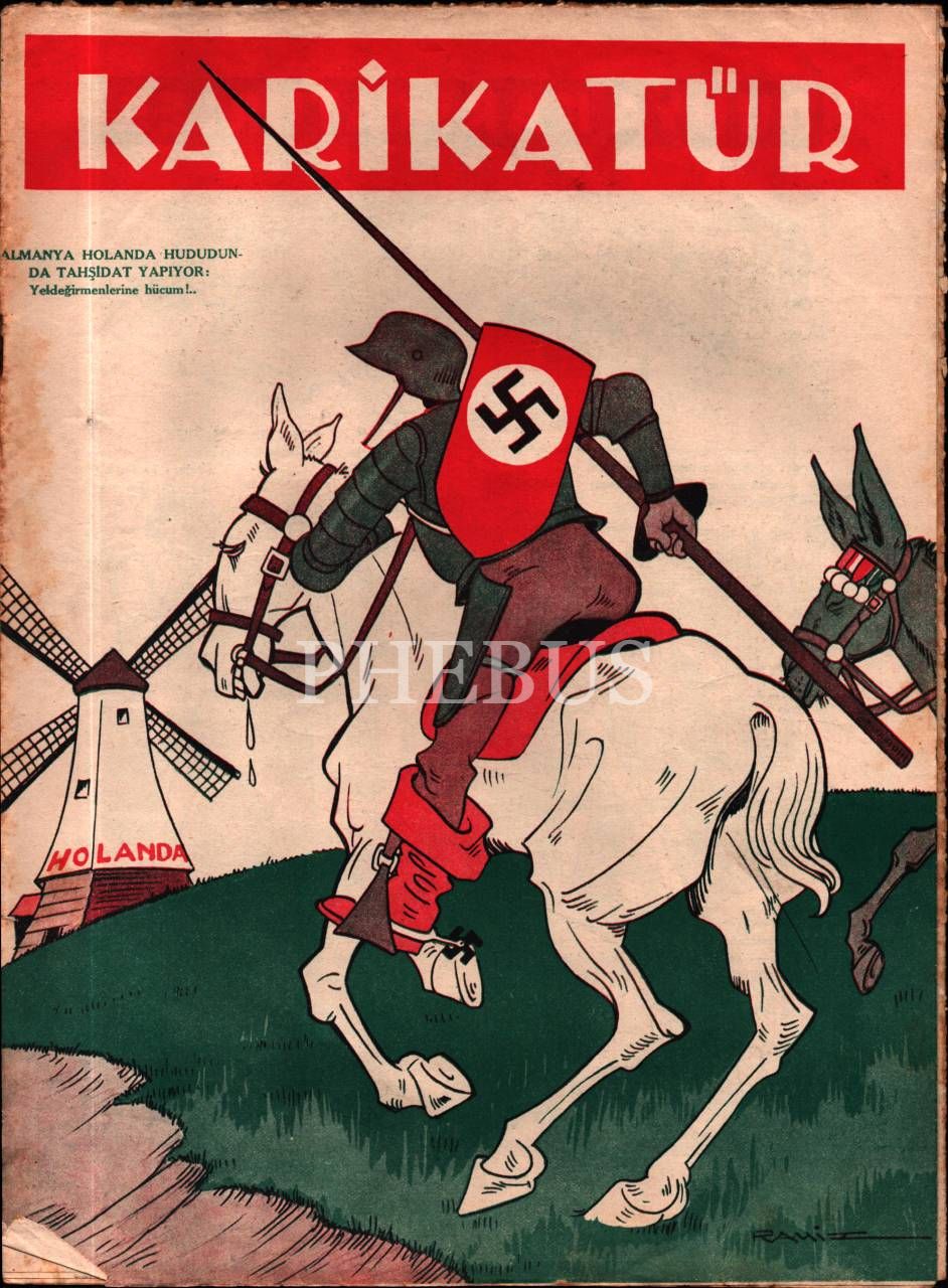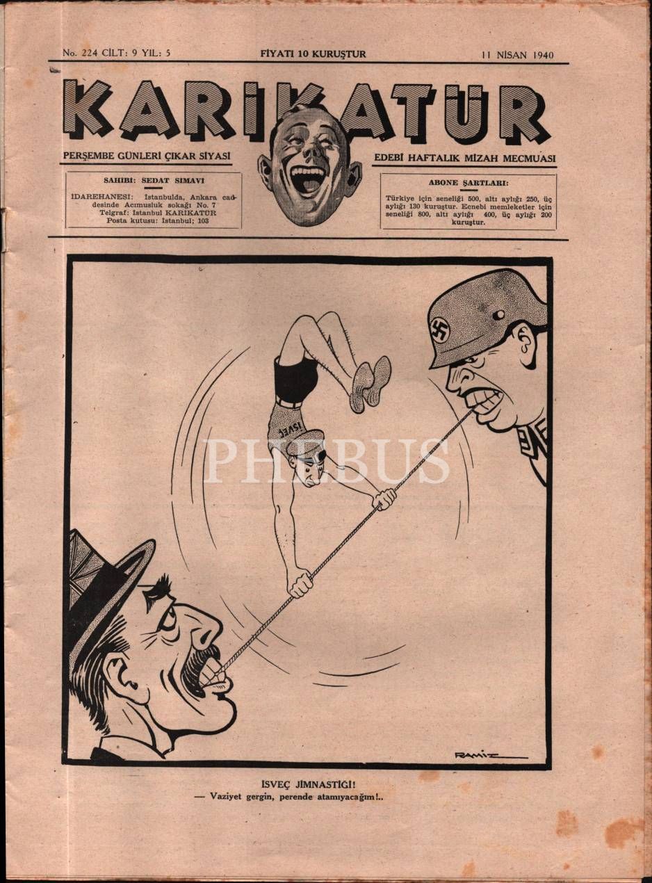 Siyasi ve edebî mizah dergisi KARİKATÜR´ün Ramiz imzalı Nazi konulu kapak görselleriyle 1939-40 tarihli 5 sayısı, 25x33 cm