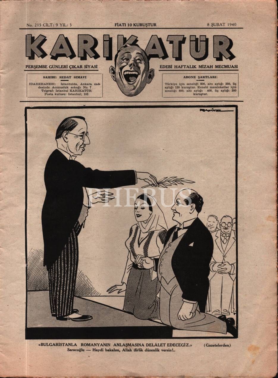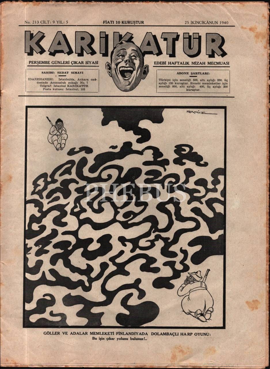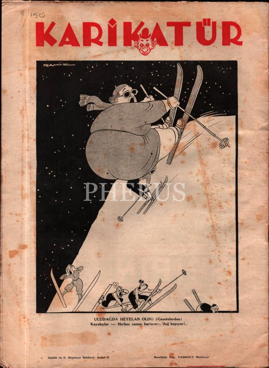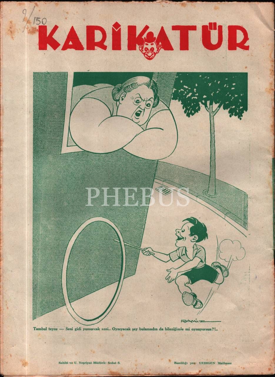 Siyasi ve edebî mizah dergisi KARİKATÜR´ün Ramiz imzalı Nazi konulu kapak görselleriyle 1939-40 tarihli 5 sayısı, 25x33 cm