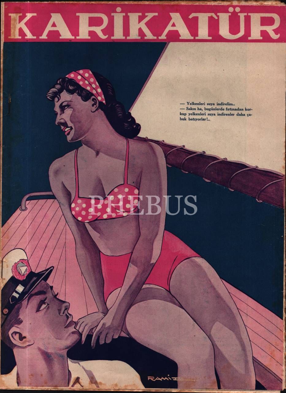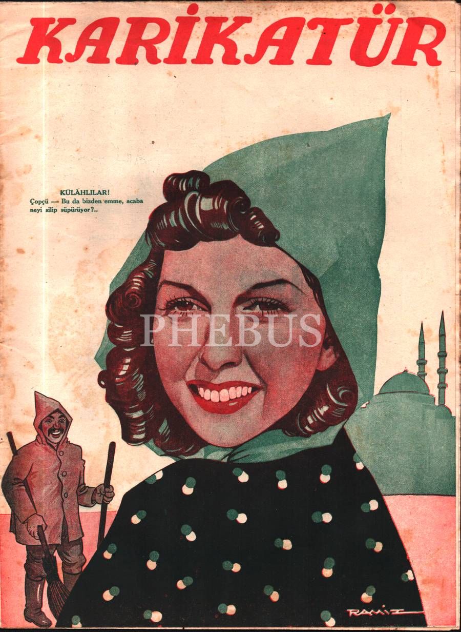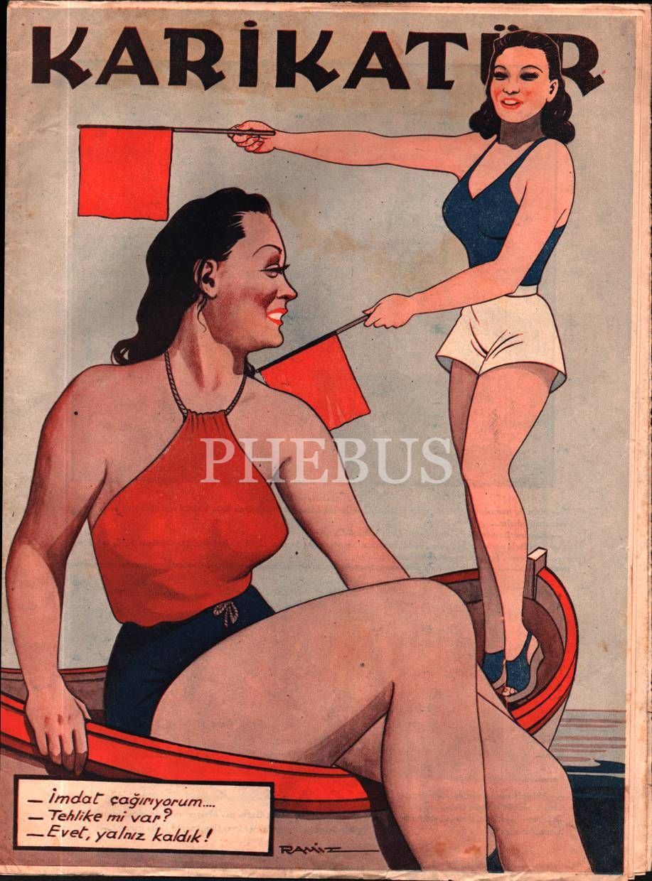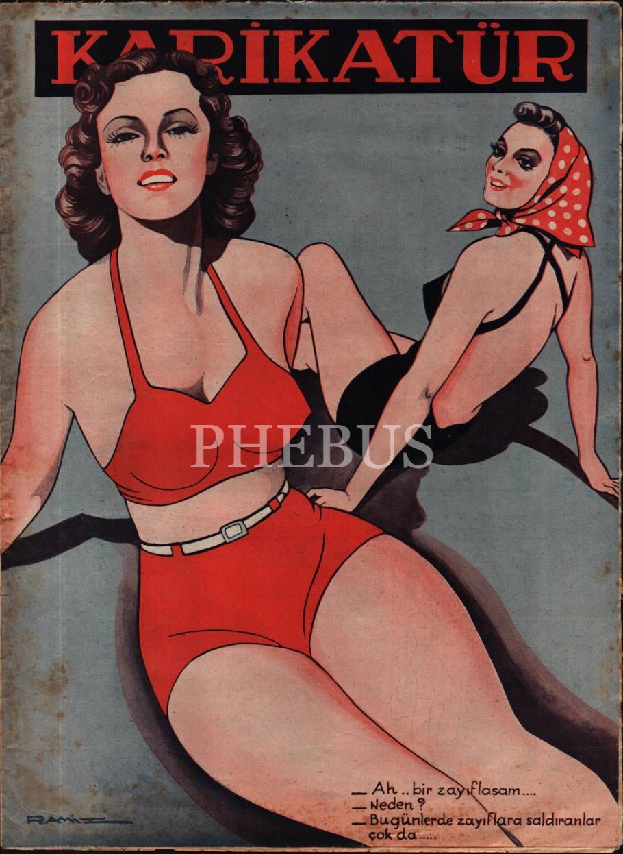 Siyasi ve edebi mizah mecmuası KARİKATÜR´ün Ramiz imzalı kadın kapak görselli 1940 tarihli 6 sayısı, 25x33 cm