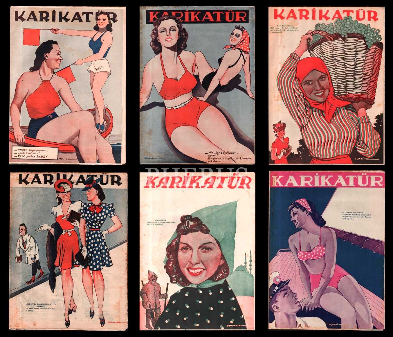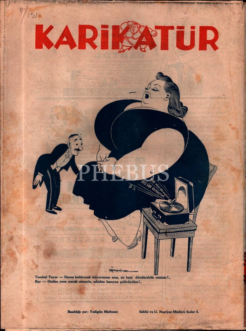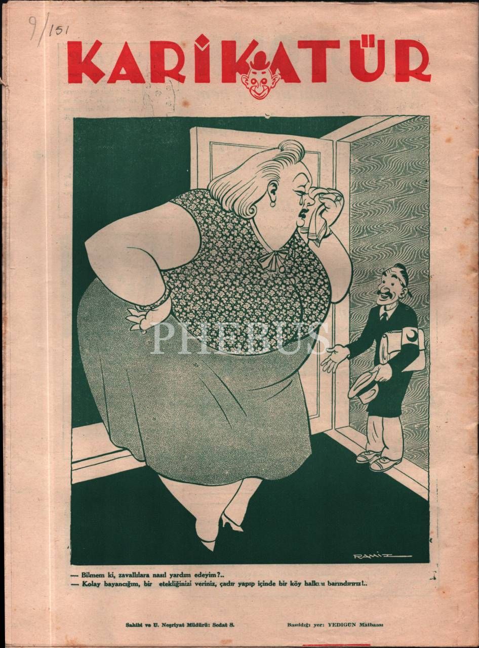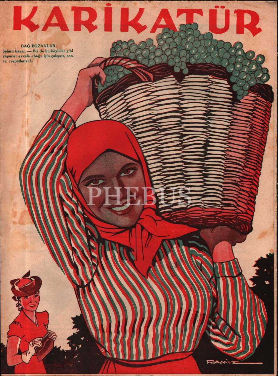 Siyasi ve edebi mizah mecmuası KARİKATÜR´ün Ramiz imzalı kadın kapak görselli 1940 tarihli 6 sayısı, 25x33 cm