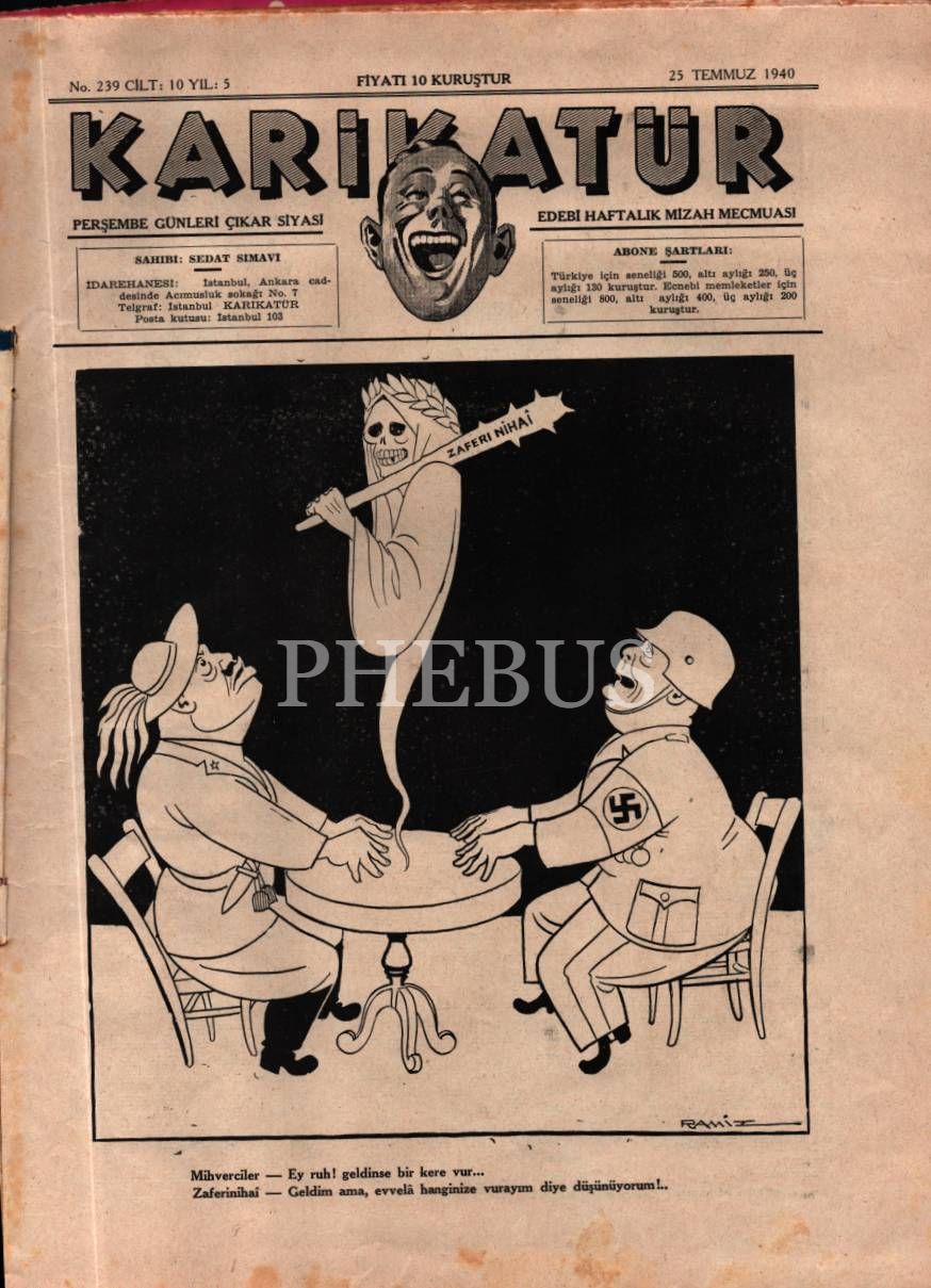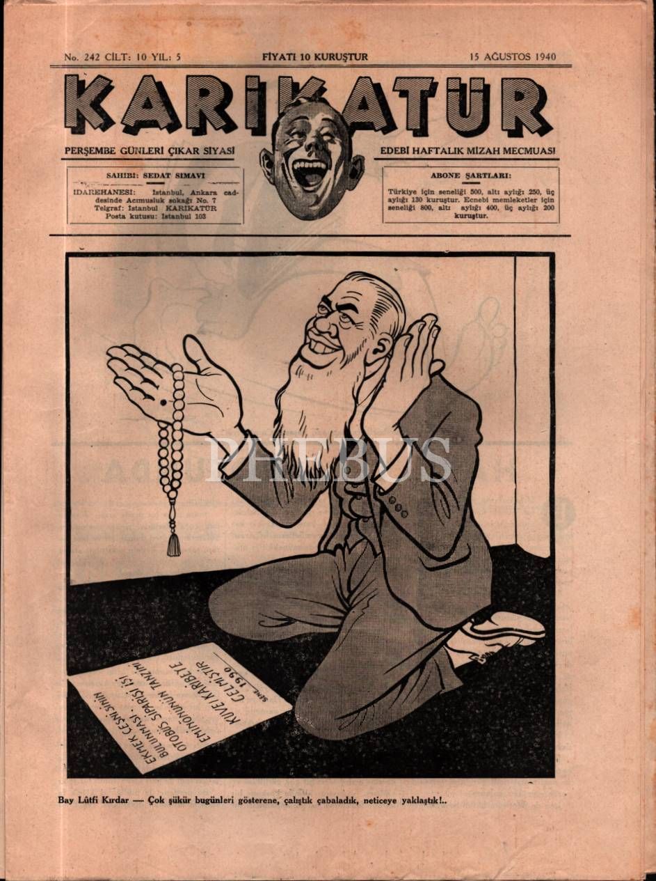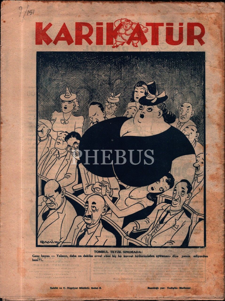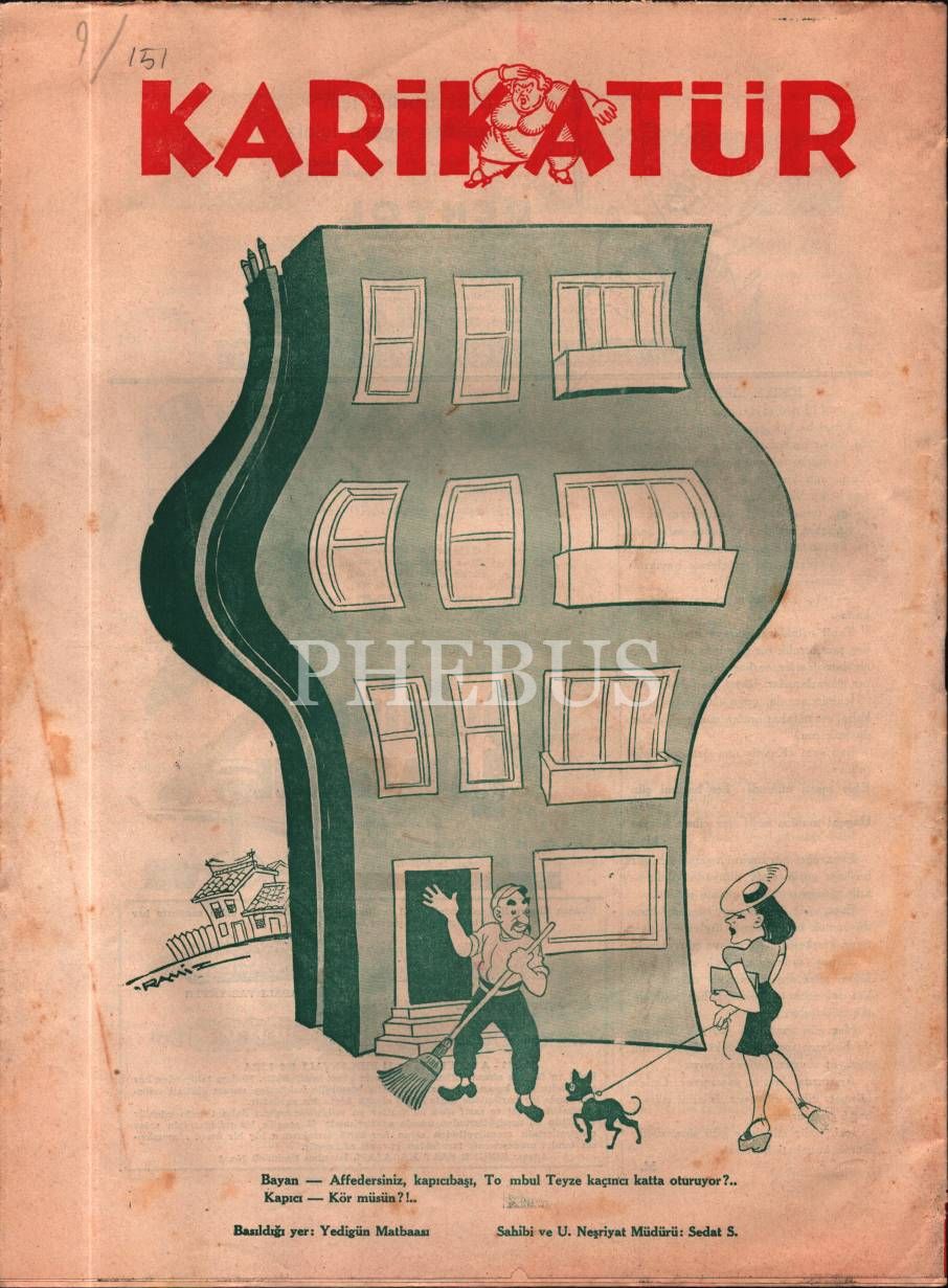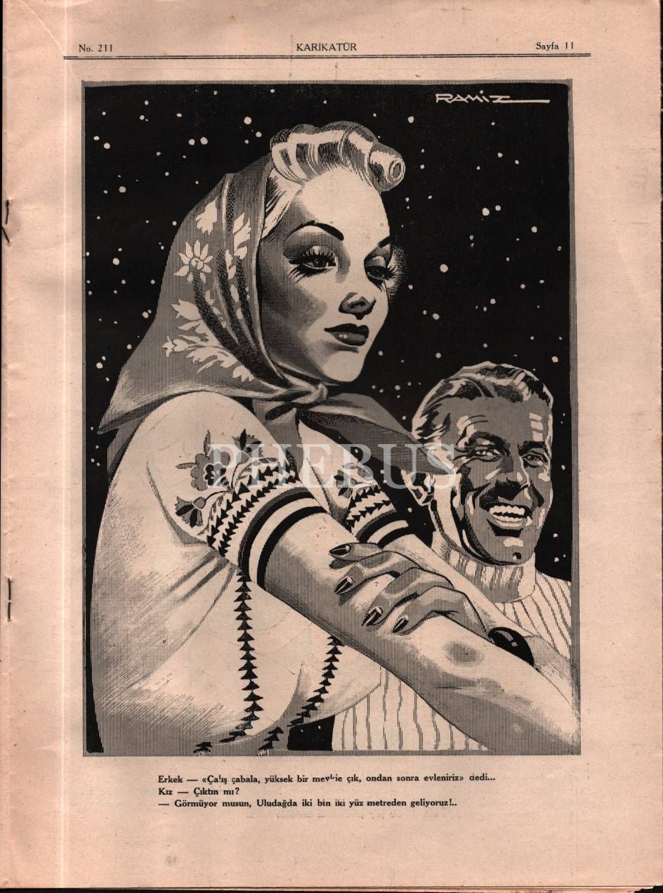 Siyasi ve edebi mizah mecmuası KARİKATÜR´ün Ramiz imzalı kadın kapak görselli 1940 tarihli 6 sayısı, 25x33 cm