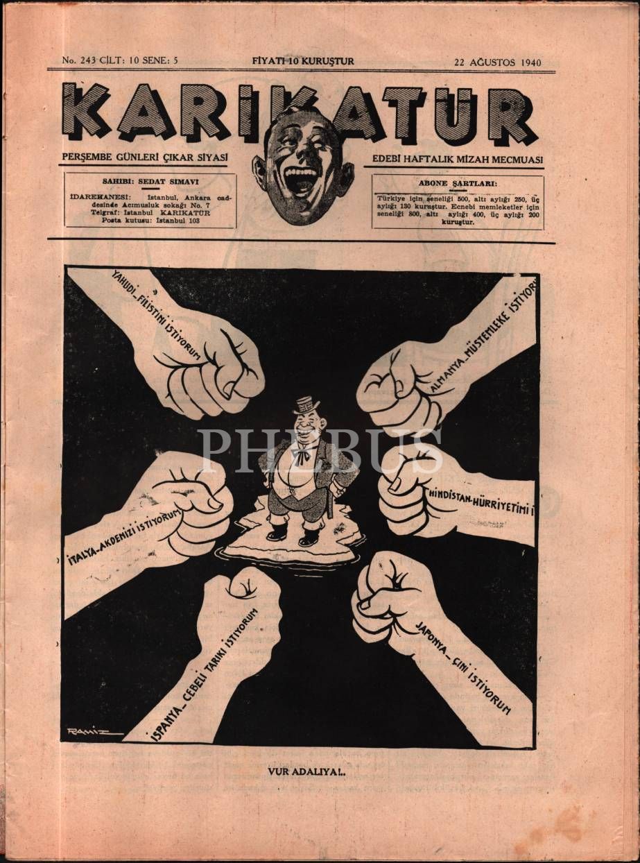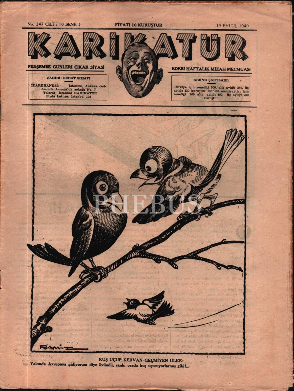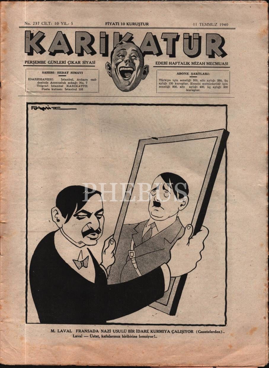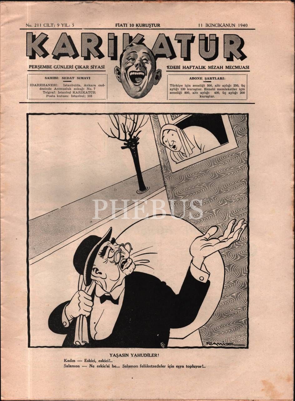 Siyasi ve edebi mizah mecmuası KARİKATÜR´ün Ramiz imzalı kadın kapak görselli 1940 tarihli 6 sayısı, 25x33 cm