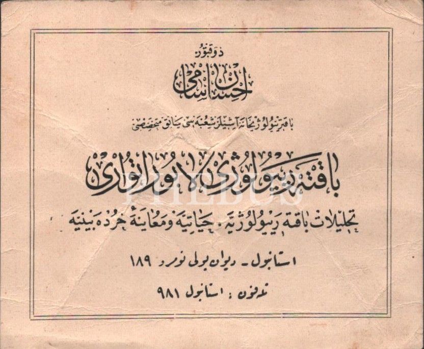 Bakteriyolojihane Aşılar Şubesi Mütehassısı Doktor İhsan Sami´ye ait kartvizit, 8x10 cm