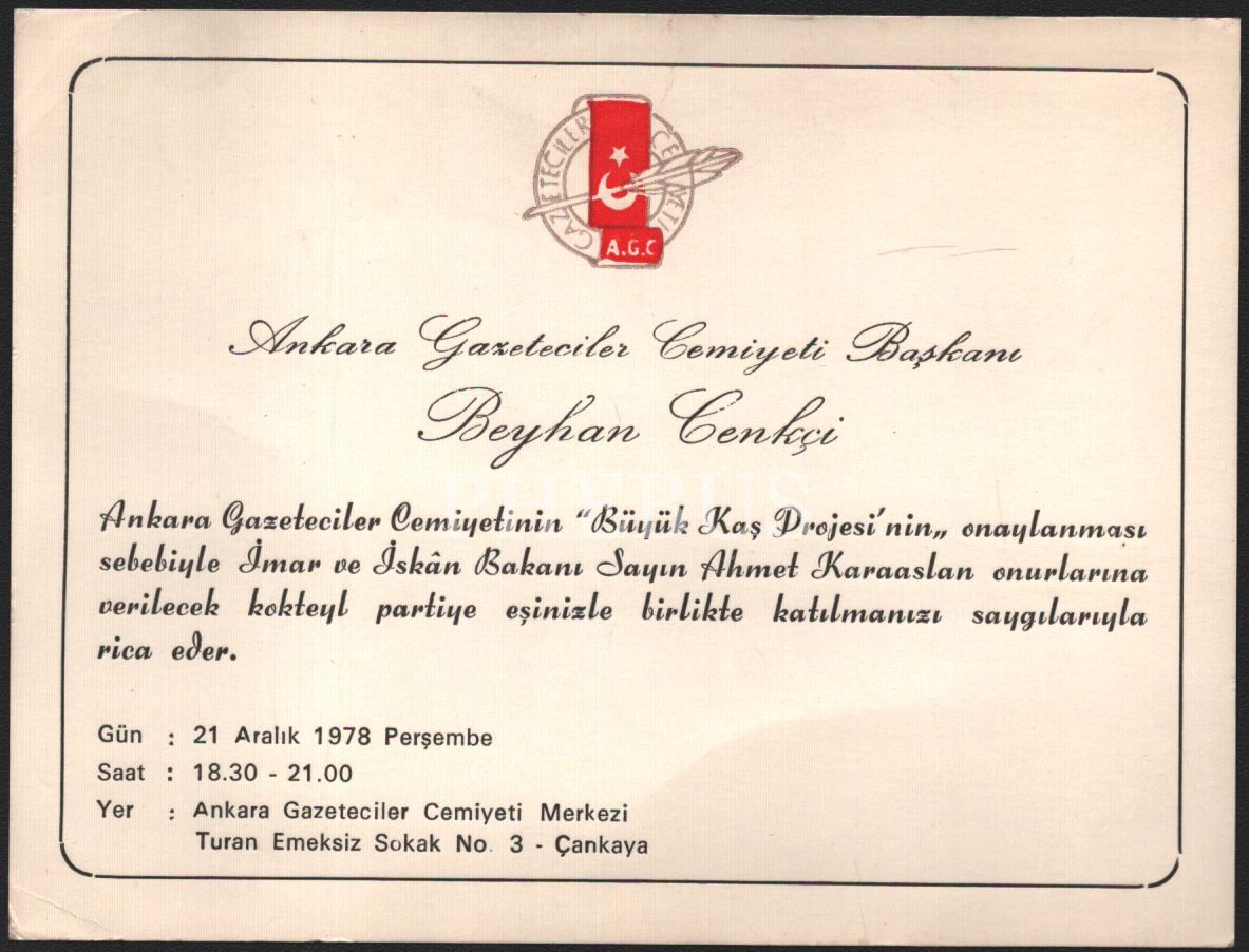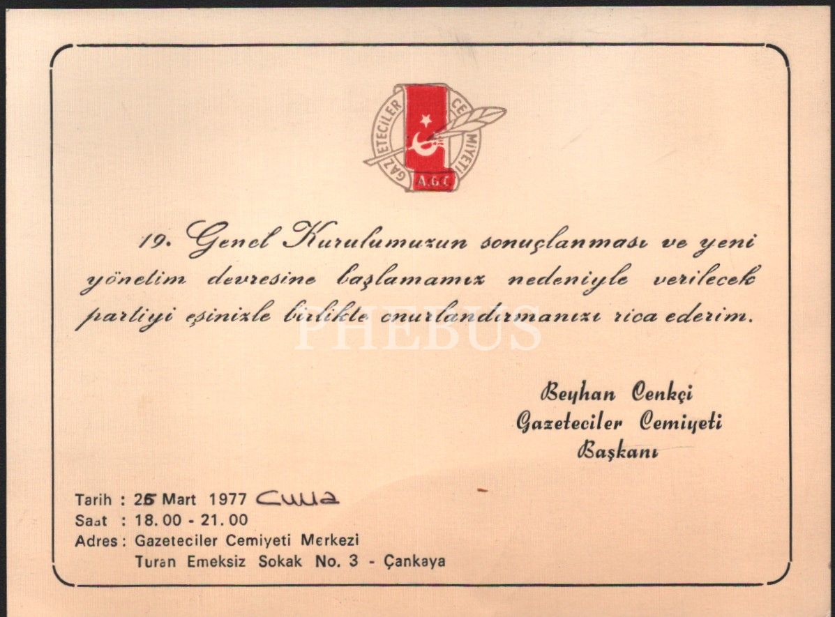 Gazeteciler Cemiyeti tarafından verilen parti davetiyeleri, 1977 ve 1978 tarihli, 10x14 cm