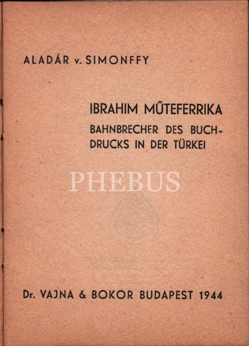Almanca IBRAHIM MÜTEFERRIKA: BAHNBRECHER DES BUCHDRUCKS IN DER TÜRKEI, Aladar V. Simonffy, Budapeşte 1944, 60 s., 10x14 cm