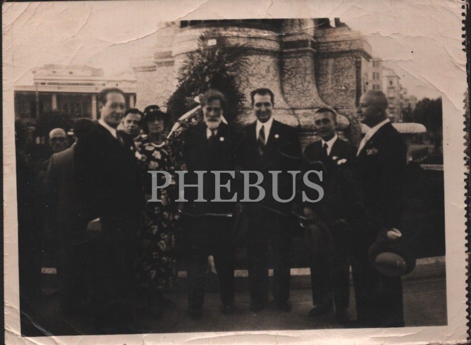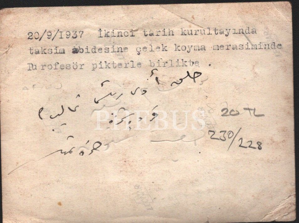 1937 tarihli II. Tarih Kurultayı´nda, Taksim Abidesi´ne çelenk koyma merasiminde Prof. Pittard ile birlikte, 8x13 cm