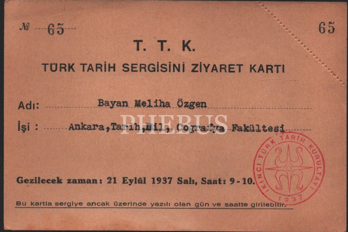 1937 tarihli Türk Tarih Sergisi ziyaret kartı, 9x14 cm