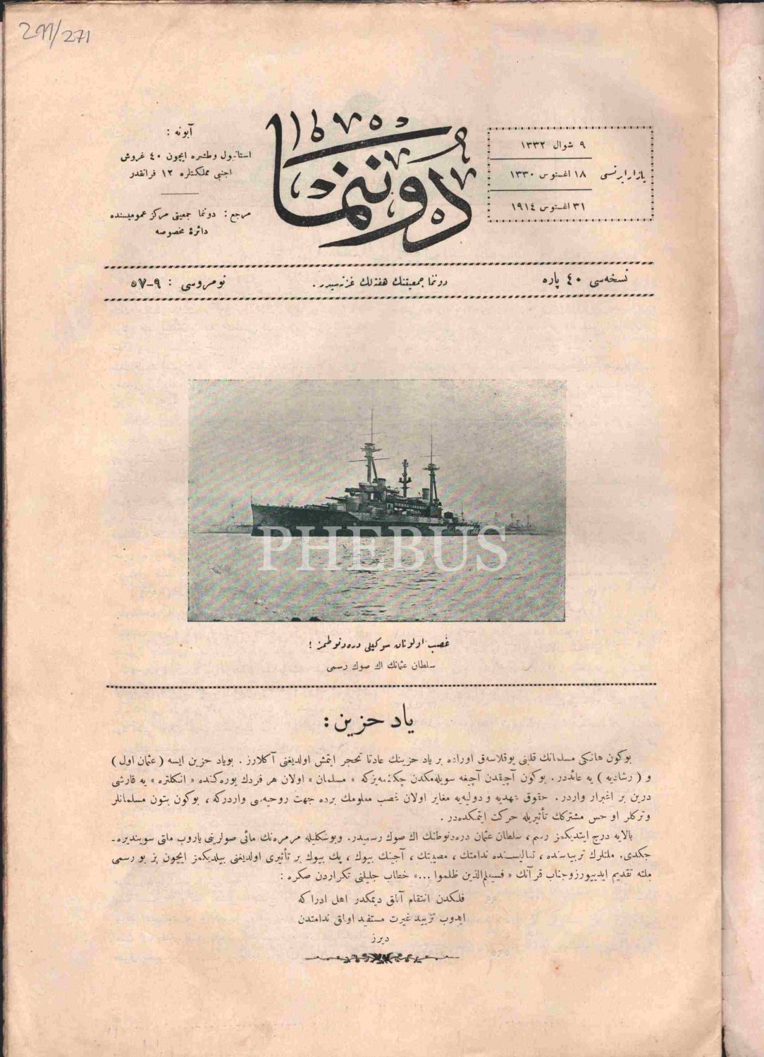 Askerî tarih: DONANMA dergisinin 1333 tarihli 9. sayısı, 25x37 cm