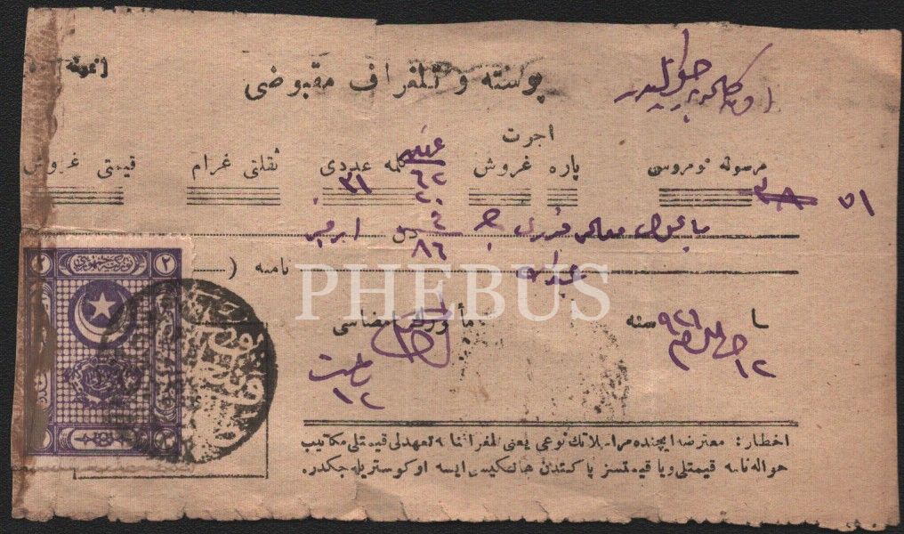 1921 tarihli posta ve telgraf makbuzu, 6x12 cm