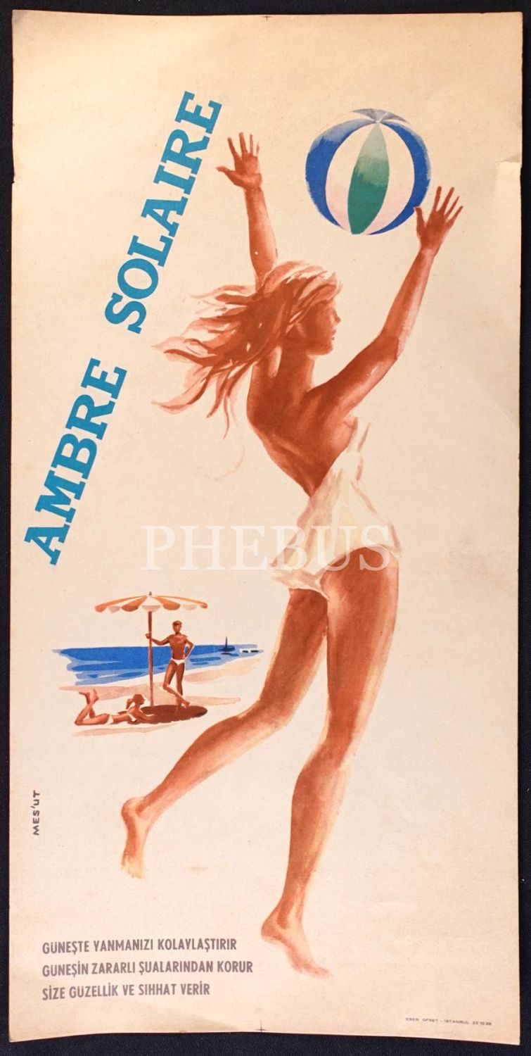 Mes´ut imzalı Ambre Solaire reklam afişi, Eser Ofset, 24x49 cm