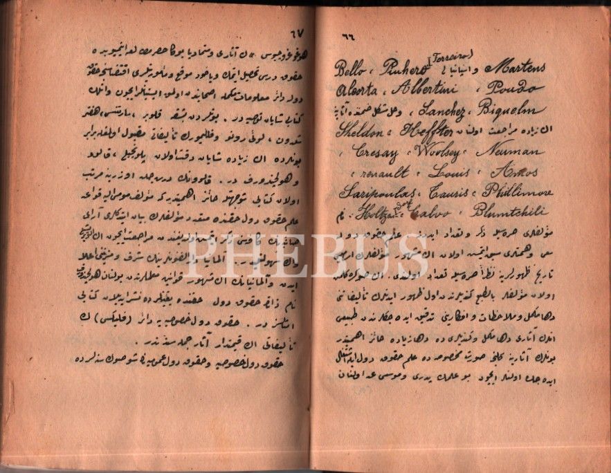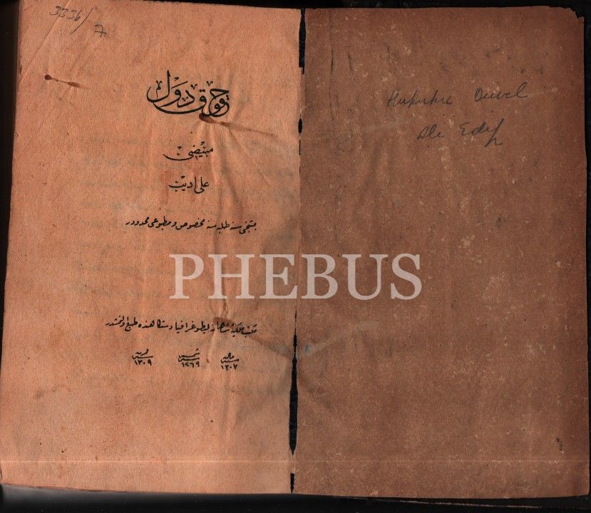 Hukuk tarihi: HUKÛK-I DÜVEL [Devletler Hukuku], haz. Ali Edib, Mekteb-i Mülkiye-i Şahane Litografya Destgâhı, 1309, 814 s., 16x23 cm, sondan eksik haliyle