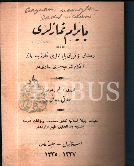 BAYRAM NAMAZLARI, Sadık Vicdanî, Amire Matbaası, İstanbul 1335, 16 s., 11x15 cm