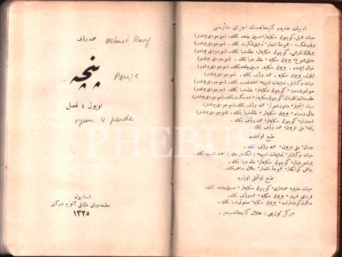 Tiyatro tarihi: PENÇE, Mehmed Rauf, Matbaacılık Osmanlı Anonim Şirketi, İstanbul 1325, 158 s., 12x18 cm