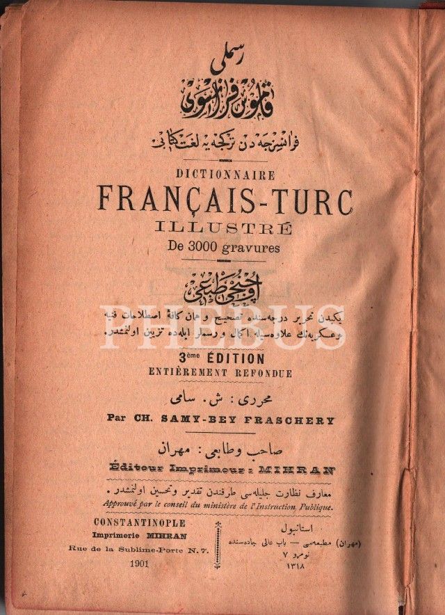 Sözlük: Resimli KÂMÛS-I FRANSEVÎ, Şemseddin Sami, Mihran Matbaası, İstanbul 1901, 13x20 cm