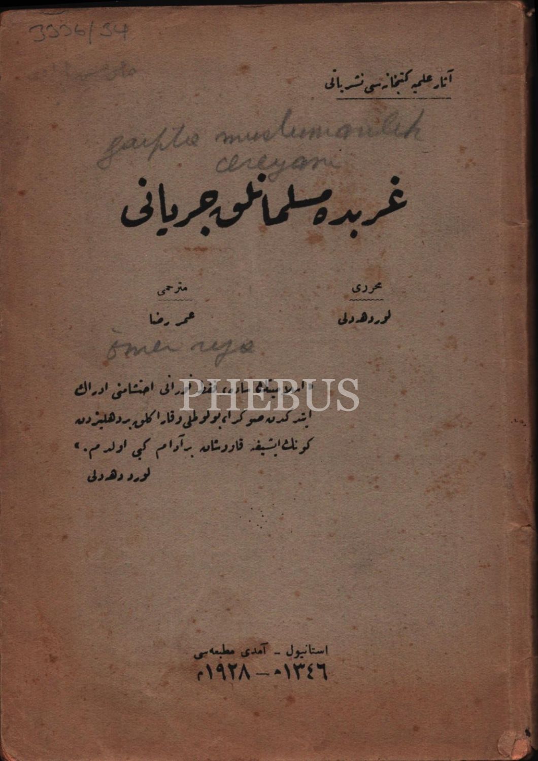 GARBDA MÜSLÜMANLIK CEREYÂNI, Lord Headly, çev. Ömer Rıza [Doğrul], Amedi Matbaası, İstanbul 1928, 78 s., 13x19 cm