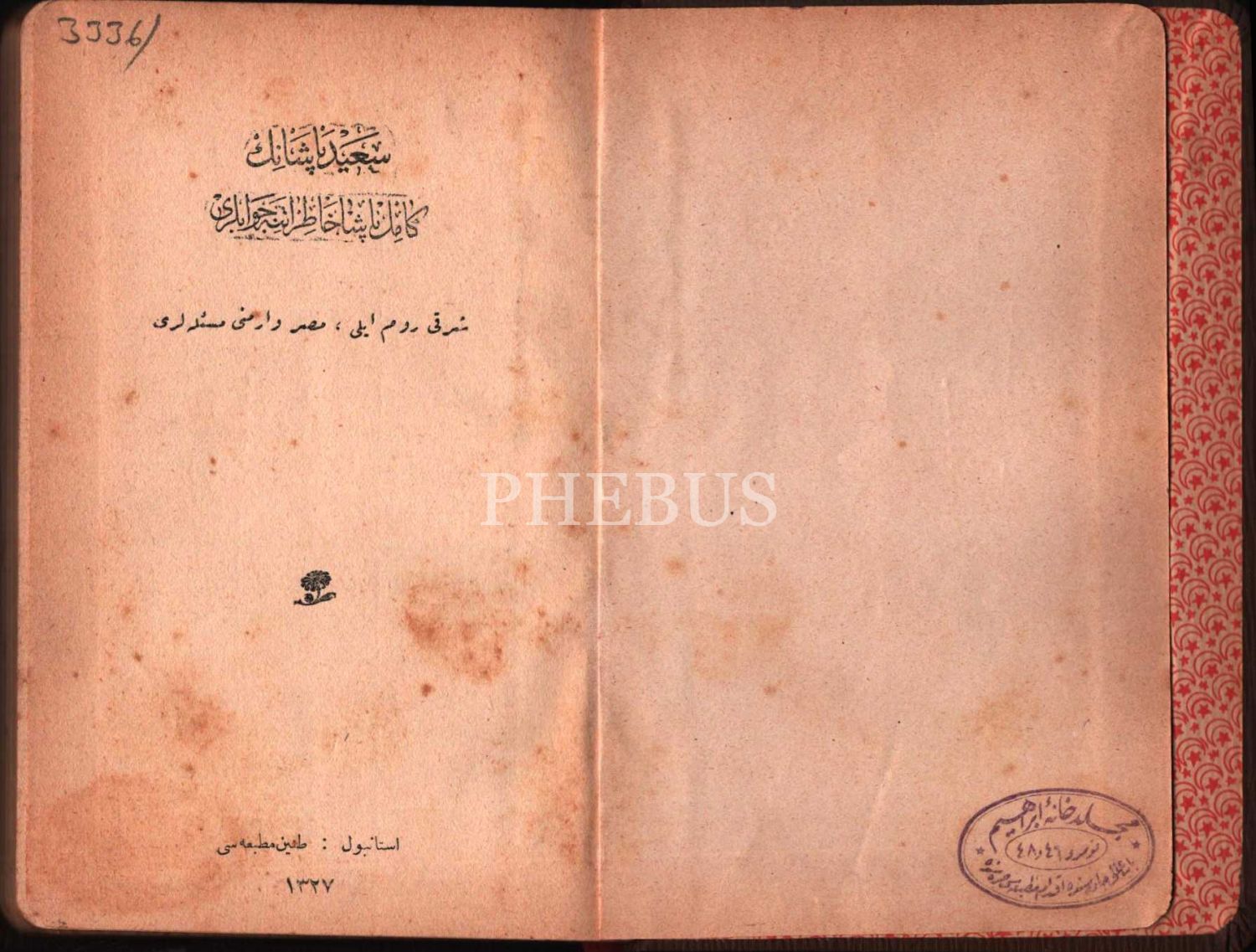 SAÎD PAŞA´NIN KÂMİL PAŞA HÂTIRÂTINA CEVÂBLARI (Şarkî Rumeli, Mısır ve Ermeni Meseleleri), Tanin Matbaası, İstanbul 1327, 90 s.,11x17 cm