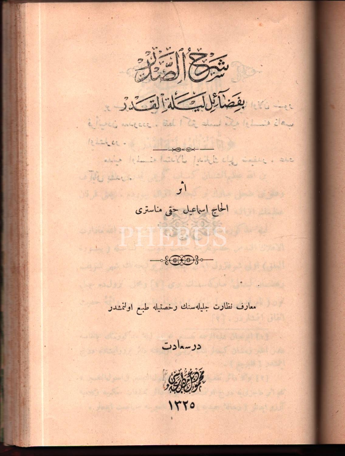 ŞERHU´S-SADR, el-Hac İsmail Hakkı Manastirî, Mahmud Bey Matbaası, İstanbul 1325, 27 s.; HULÂSATÜ´L-KELÂM FÎ ME´SERİ´L-İSLÂM RİSÂLESİ, 79 s., 14x19 cm