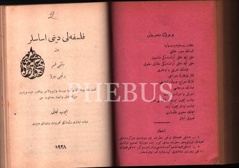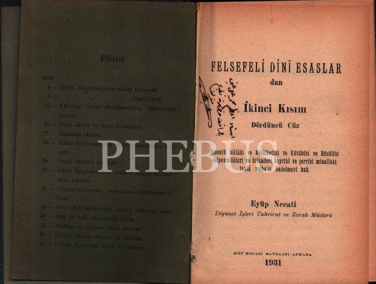 FELSEFELİ DÎNÎ ESÂSLAR, Eyyüb Necati, Evkaf-i İslamiye Matbaası, İstanbul 1927, 112 s., 13x19 cm