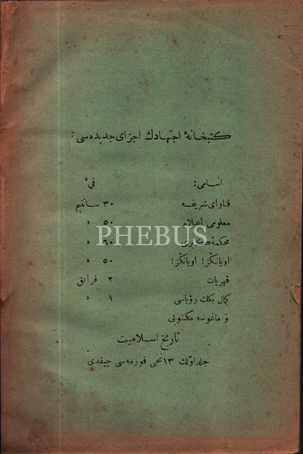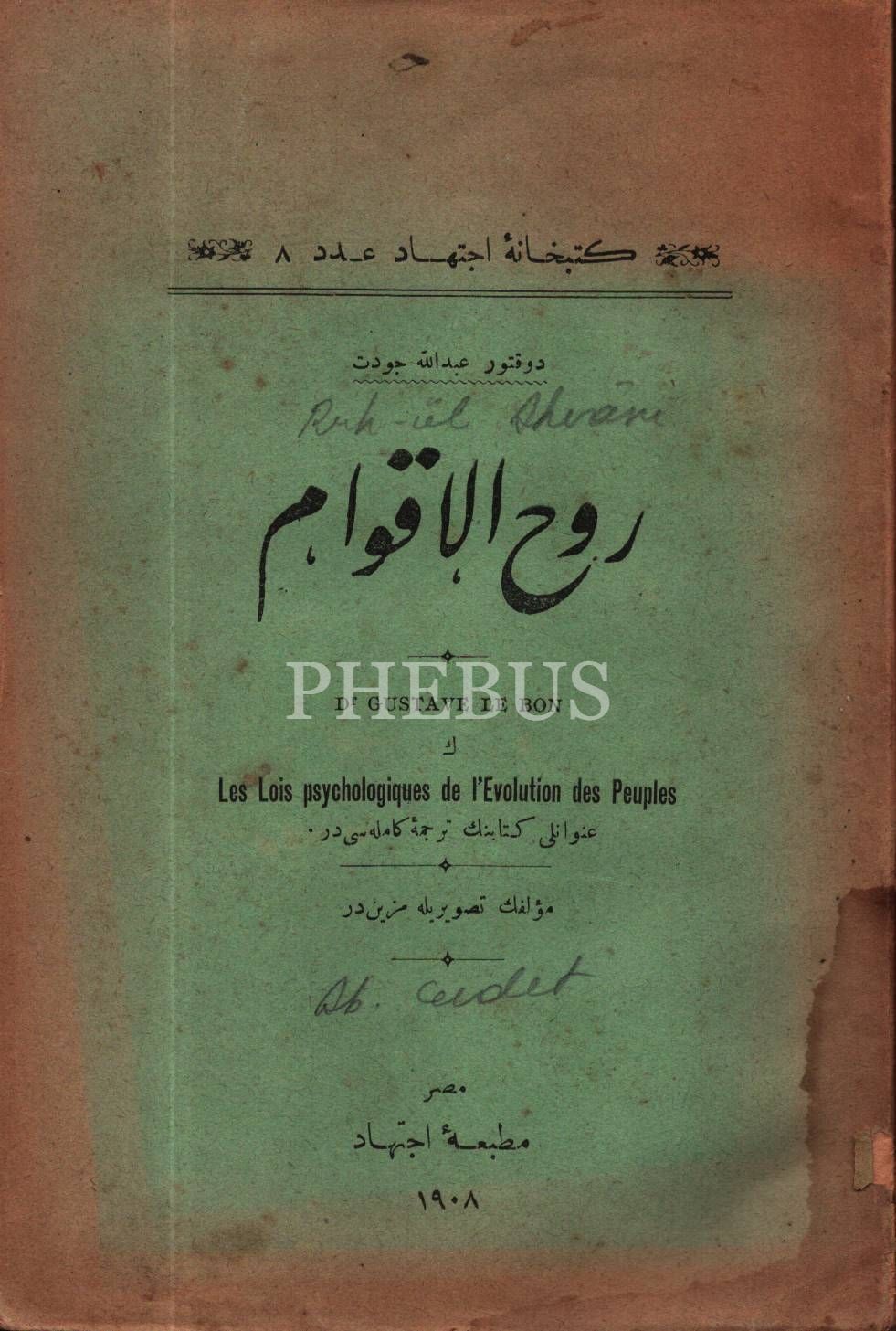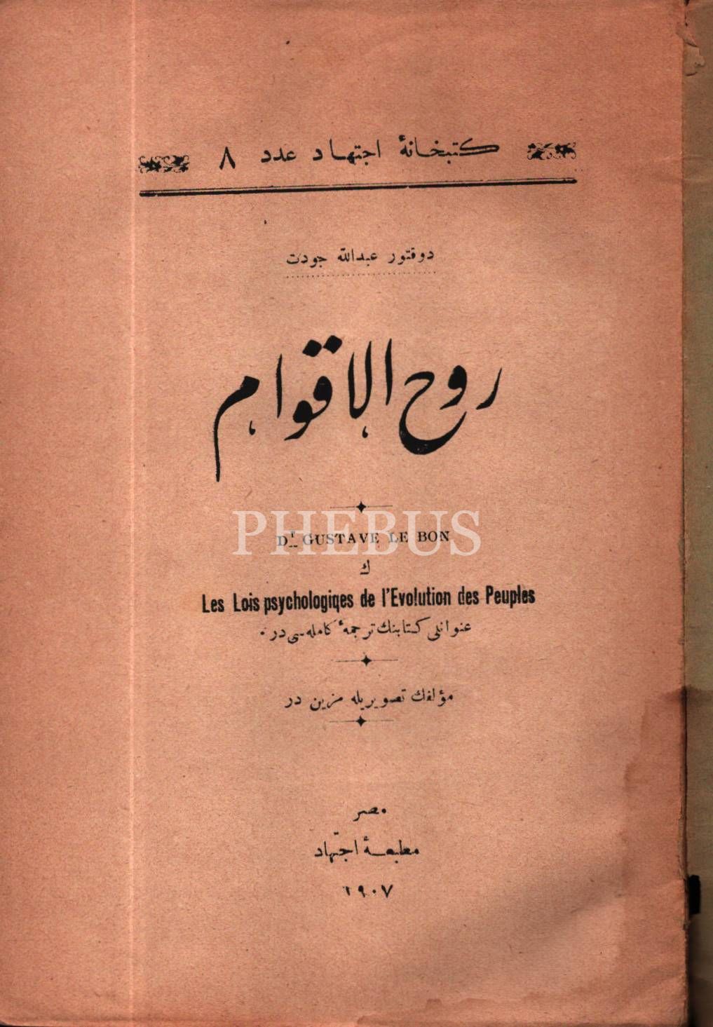 Düşünce tarihi: RÛHU´L-AKVÂM, Gustave Le Bon, çev. Abdullah Cevdet, İctihad Matbaası, Mısır 1908, 296 s., 12x18 cm, sayfaları açılmamış ve sırtı ayrık haliyle