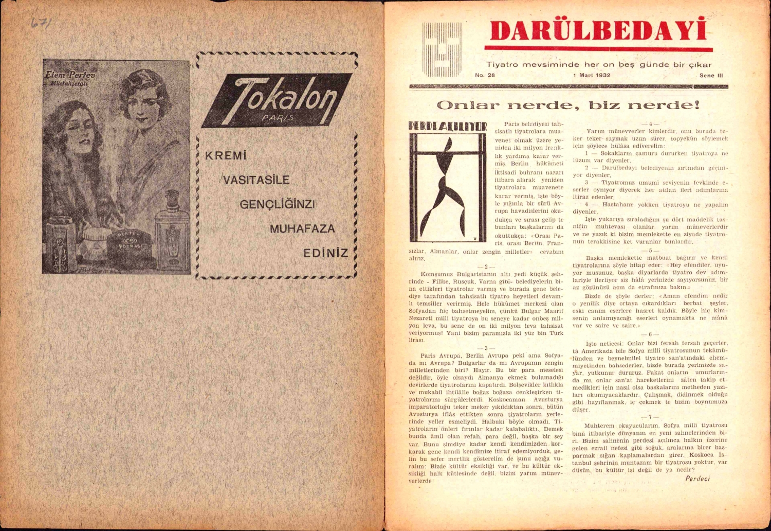 Darülbedayi dergisi, 1939 tarihli, resimli, 16 sayfa, 20x28cm