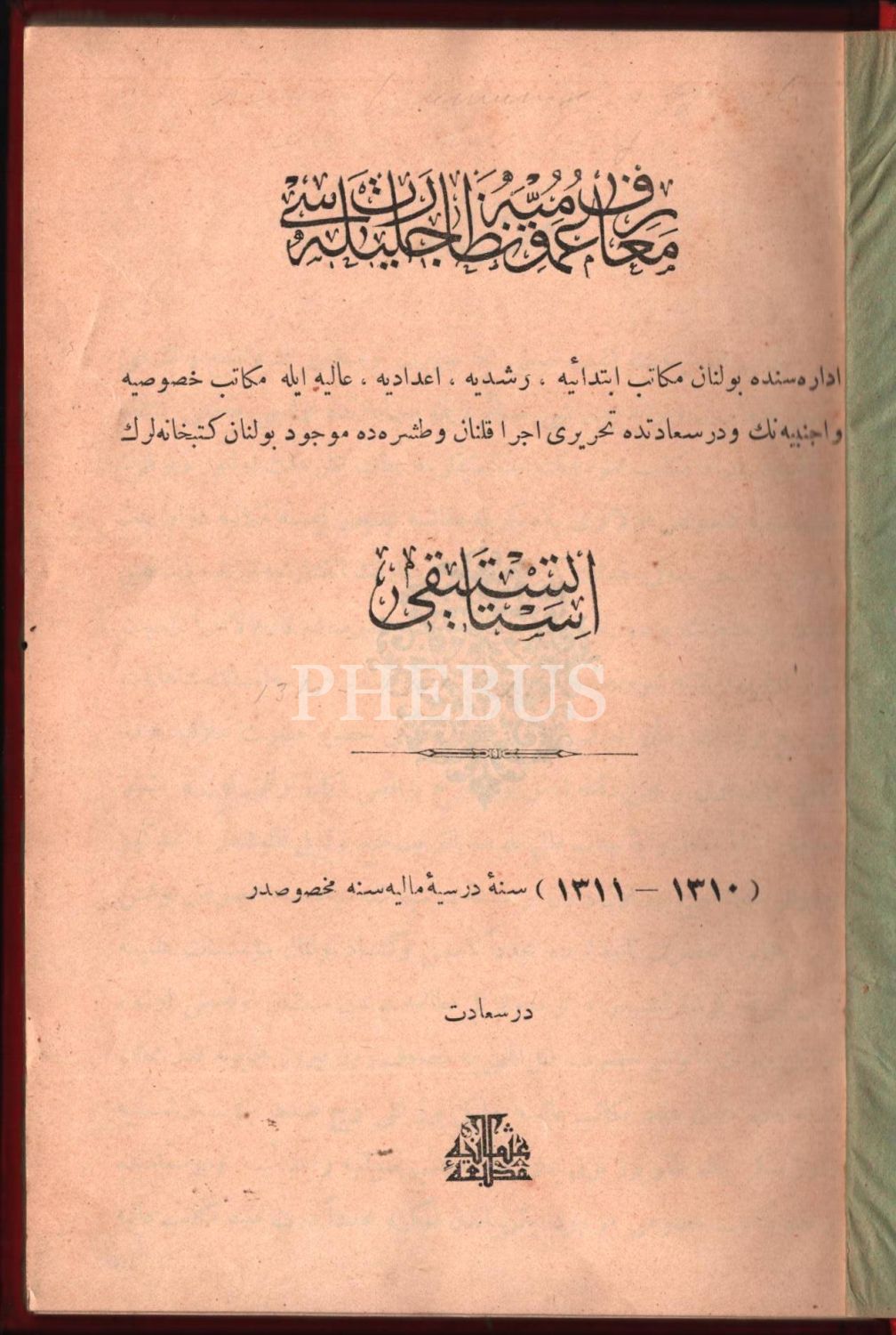 Eğitim tarihi: Osmanlı armalı cildinde İSTATİSTÎKÎ, Osmaniye Matbaası, İstanbul 1310-11, 58 s., 16x23 cm