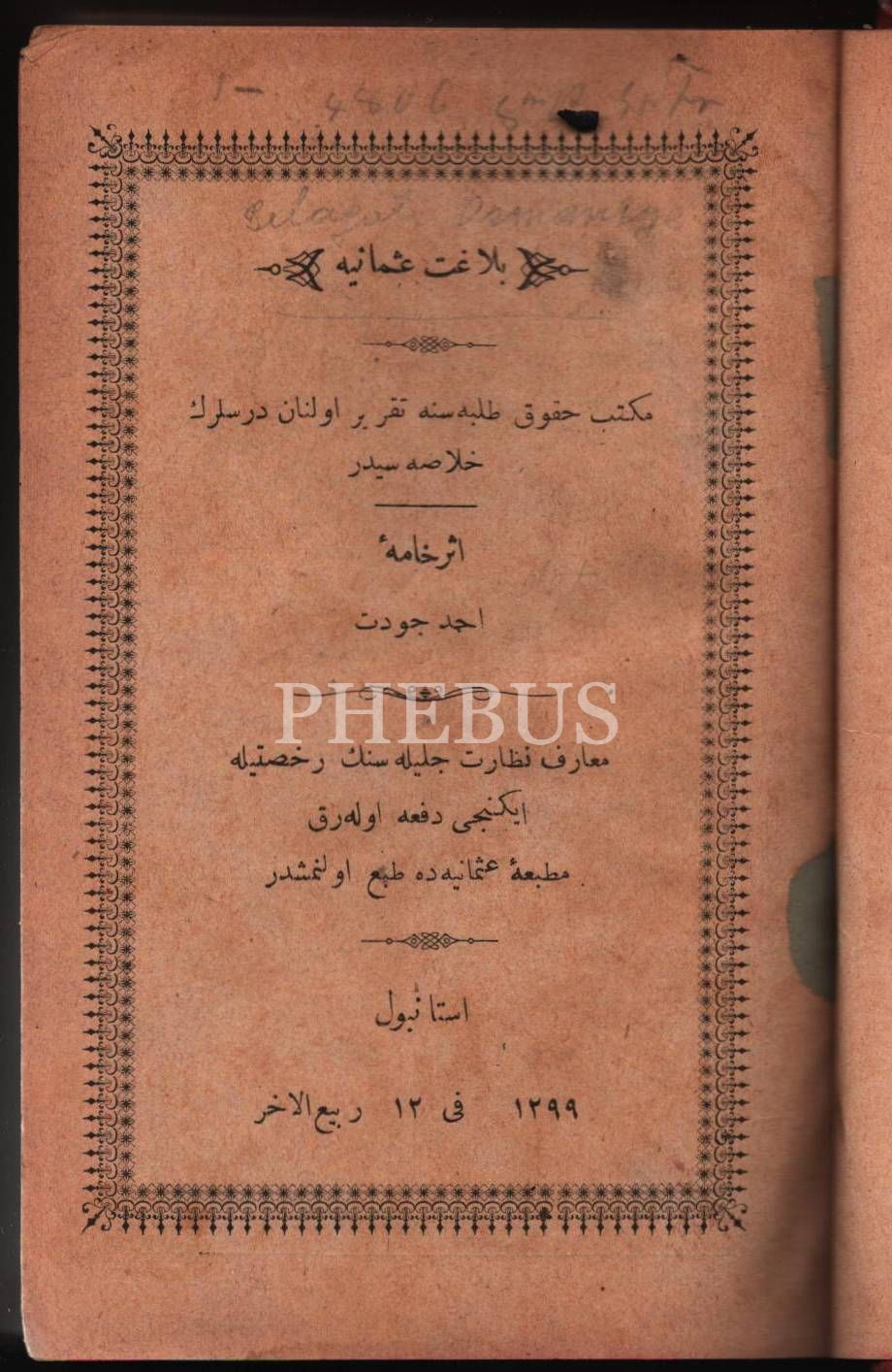 Dilbilgisi: BELÂGAT-İ OSMÂNİYYE, Ahmed Cevdet, Osmaniyye Matbaası, İstanbul 1299, 176 s., 12x17 cm