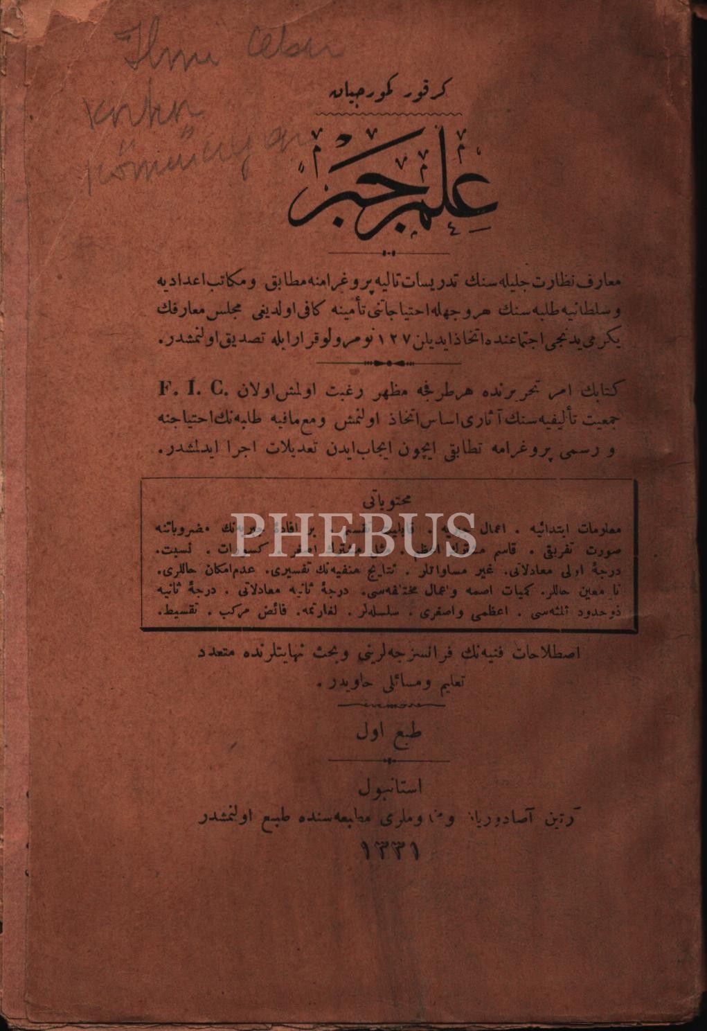 Eğitim tarihi: İLM-İ CEBİR [1. Baskı], Kirkor Kömürcüyan, Artin Asaduryan ve Mahdumları Matbaası, İstanbul 1331, 288 s., 13x19 cm