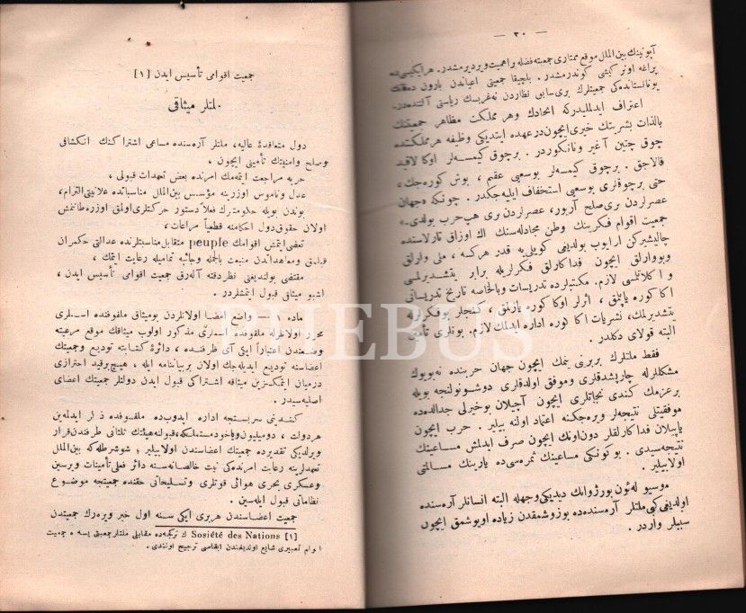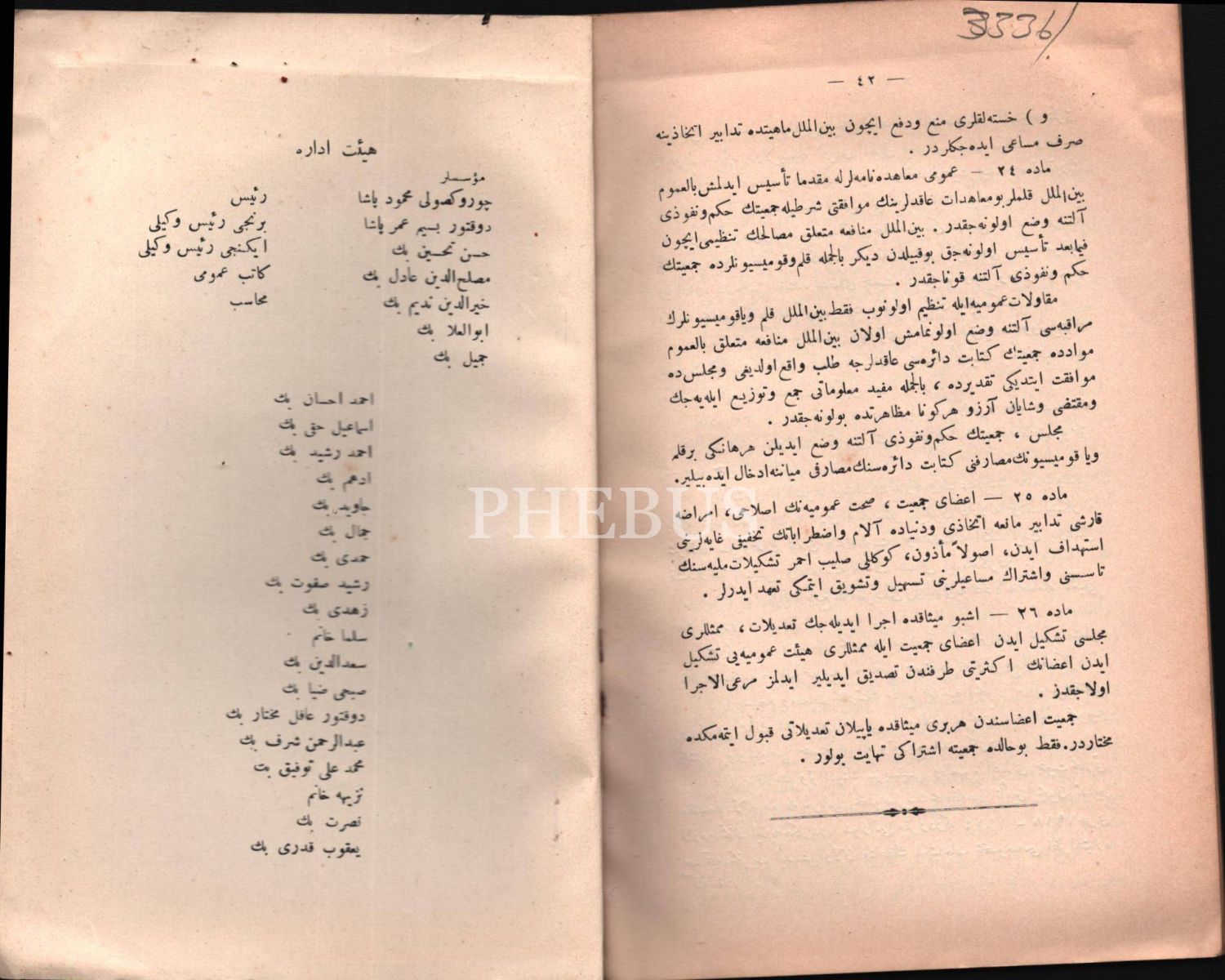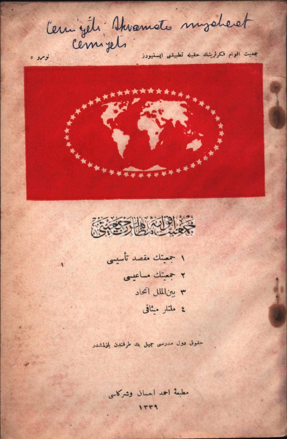 CEM´İYYET-İ AKVÂM´A MÜZÂHERET CEMİYETİ [Milletler Cemiyeti'ne Destek Cemiyeti], Devletler Hukuku Müderrisi Cemil Bey, Ahmed İhsan ve Şürekası Matbaası,1339, 42 s., 12x19 cm