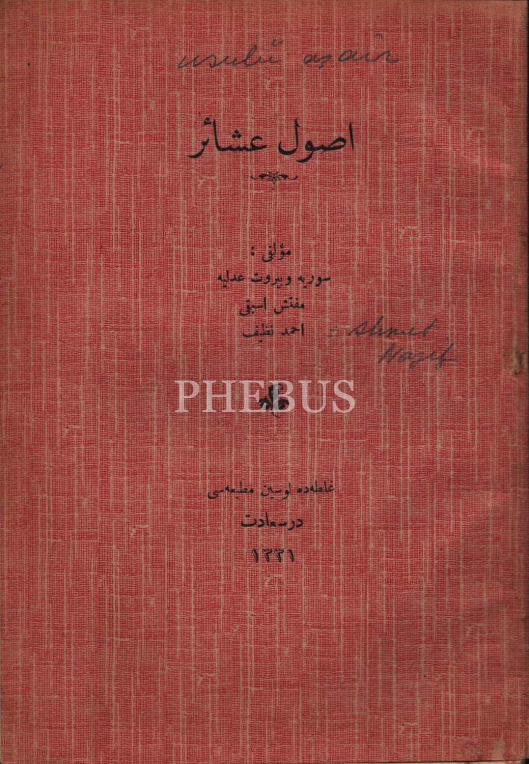 Hukuk tarihi: USÛL-İ AŞÂİR [Aşiretler Usulü], Suriye ve Beyrut Adliye Müfettişi Ahmed Nazif, Galata Lusyen Matbaası, İstanbul 1331, 53 s., 13x19 cm, sayfaları açılmamış haliyle