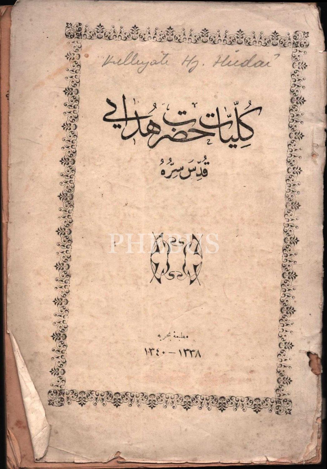 KÜLLİYYÂT-I HAZRET-İ HÜDÂYÎ, Bahriye Matbaası, 1338-1340, 173 s., 16x24 cm, ön kapağı ayrık haliyle