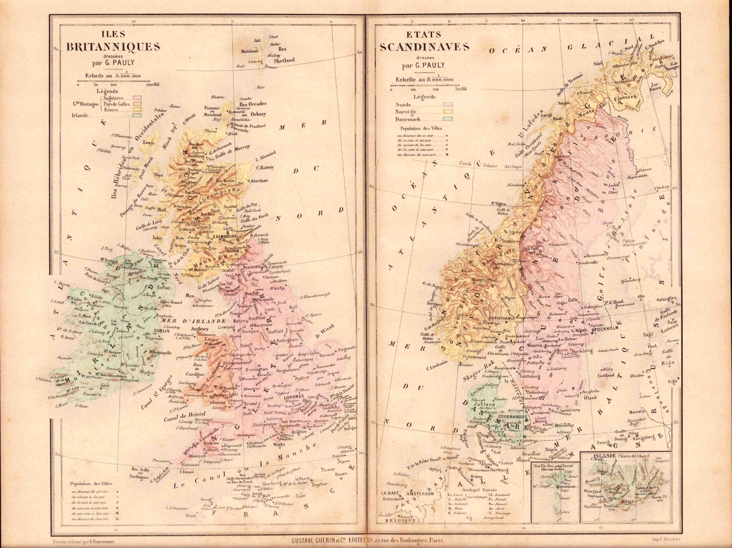 Britanya ve İskandinav Haritası, Paris baskısı, G. Pauly, 40x32 cm