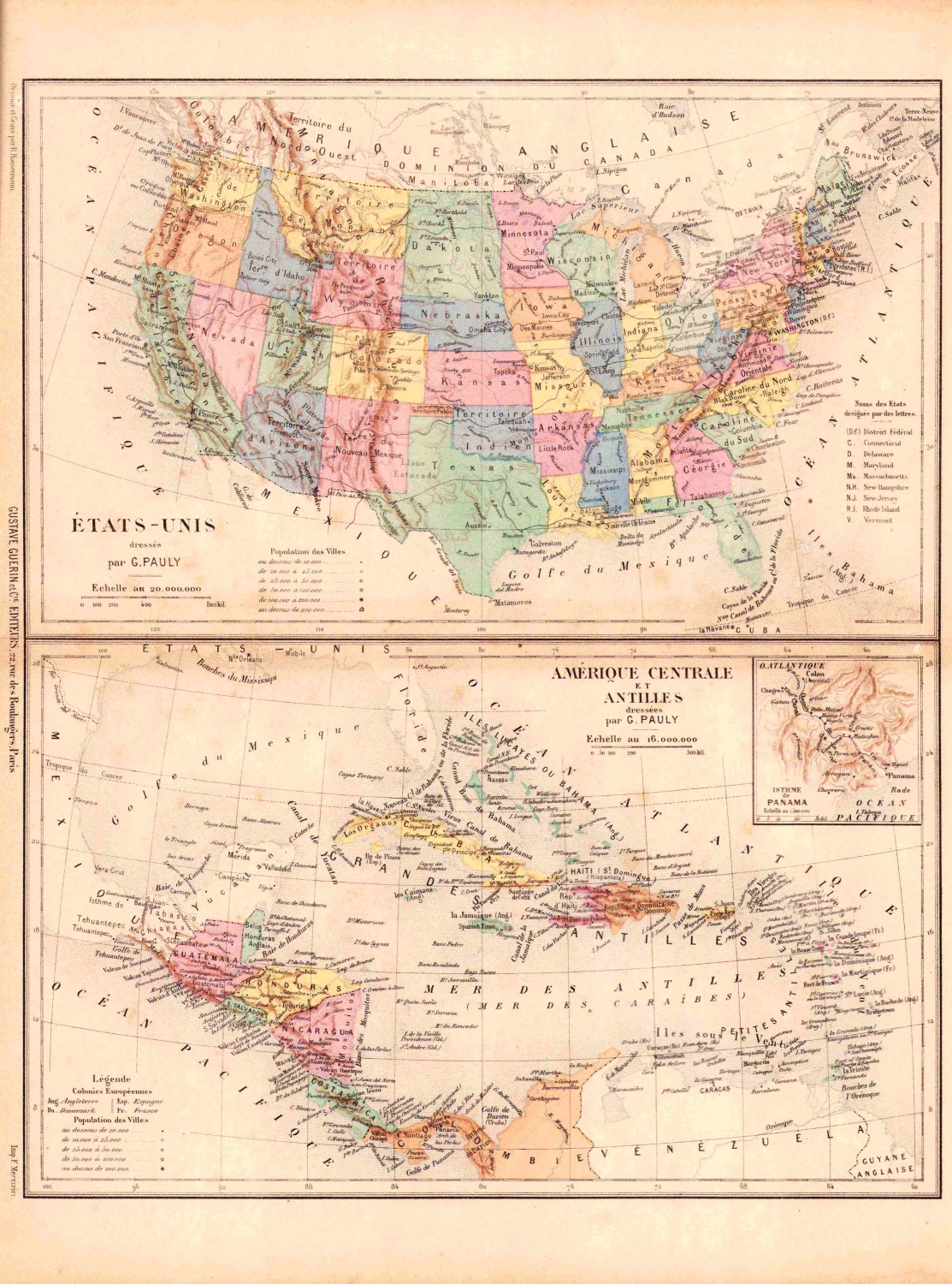 Amerika Birleşik Devletleri ve Orta Amerika ve Antiller, Paris baskısı, G. Pauly, 40x32 cm