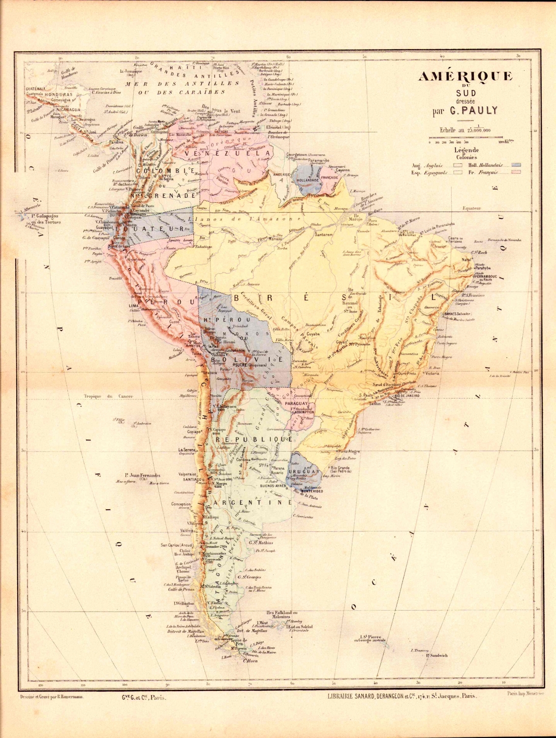 Güney Amerika Haritası, Paris baskısı, G. Pauly, 40x32 cm