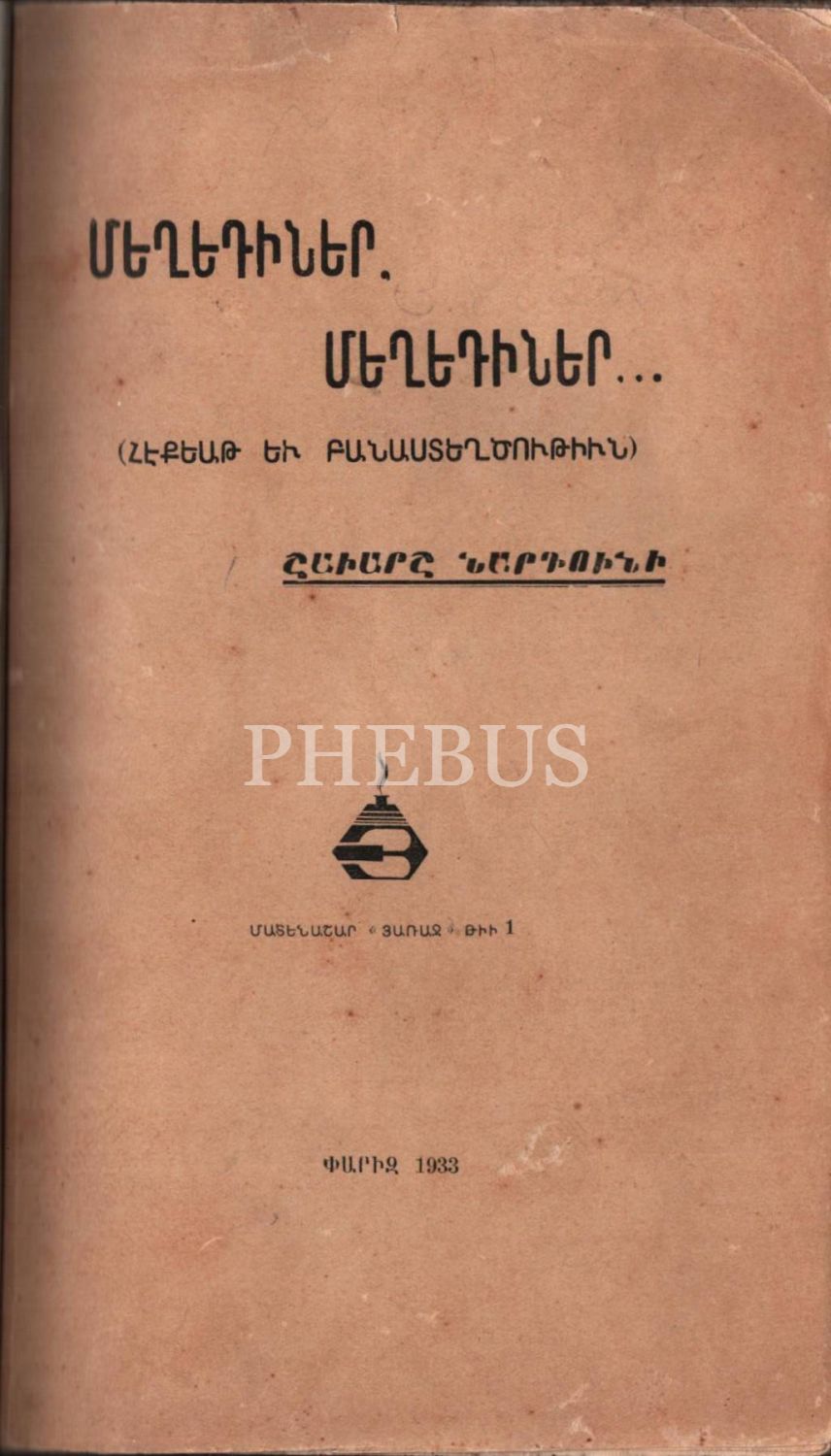 Mısır cildinde HİKÂYELER VE ŞİİRLER, Şavarş Nartuni, Haraç Matbaası, Paris 1933