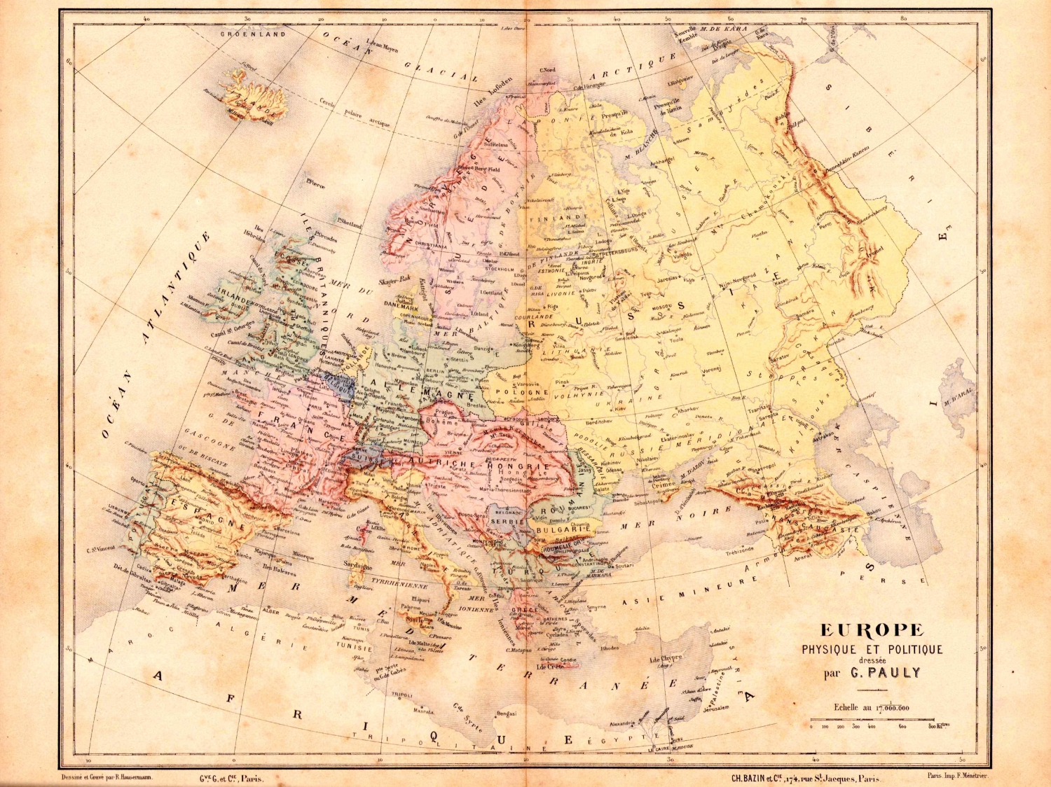 Avrupa Kıtası Haritası, Paris baskısı, G. Pauly, 40x32 cm