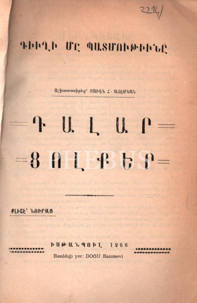 YEŞİŞ IŞILTILAR (Yeşilköy Ermeni Okulu Hatıratı), Zaven H. Acemyan, Doğu Basımevi, İstanbul 1966