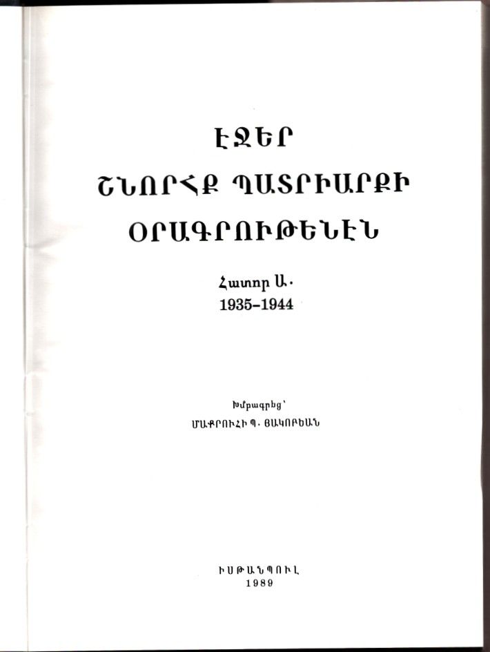 PATRİK ŞİNORK KALUSDYAN´DAN GÜNCEL YAZILAR (1935-1944), haz. Makruhi B. Hagopyan, İstanbul 1989