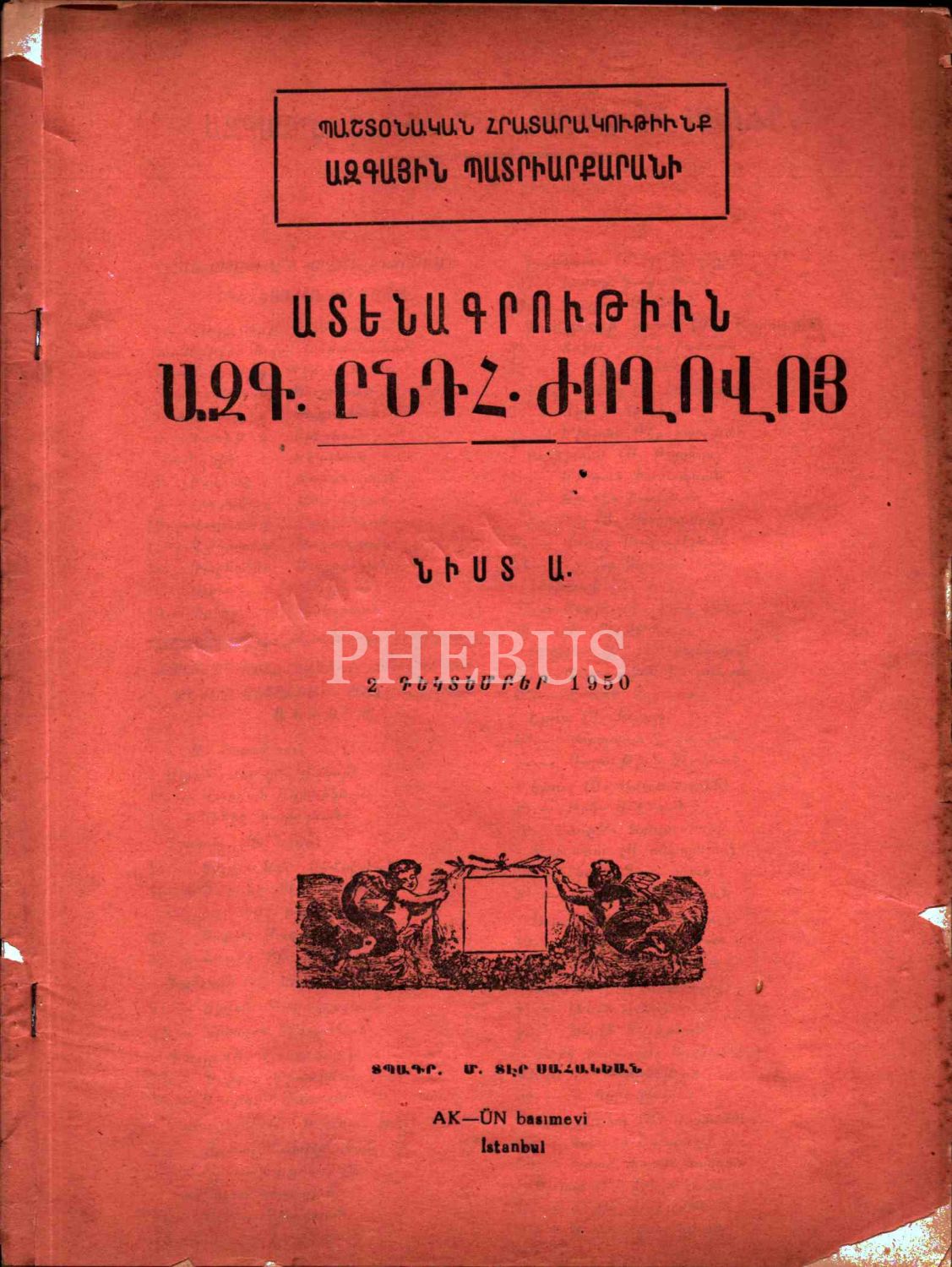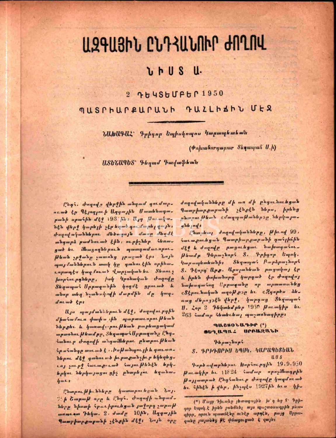 Millet Toplantısı- 1. ve 2. Oturum (2/12/1950 ve 11/10/1961), Der Sahagyan Matbaası, Ak-Ün Basımevi, İstanbul