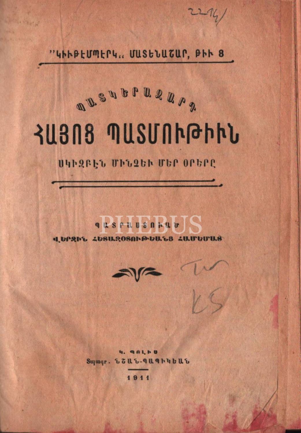 Resimli ERMENİ TARİHİ, Nişan Babigyan Matbaası, İstanbul 1911