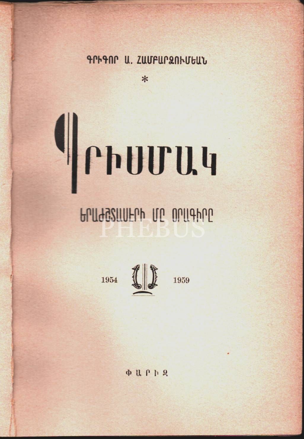 İstanbullu Ermeni şair Zahrad´a imzalı BRİSMAG [Bir Musikişinasın Güncesi], Krikor A. Hampartsumyan, Paris 1954-59